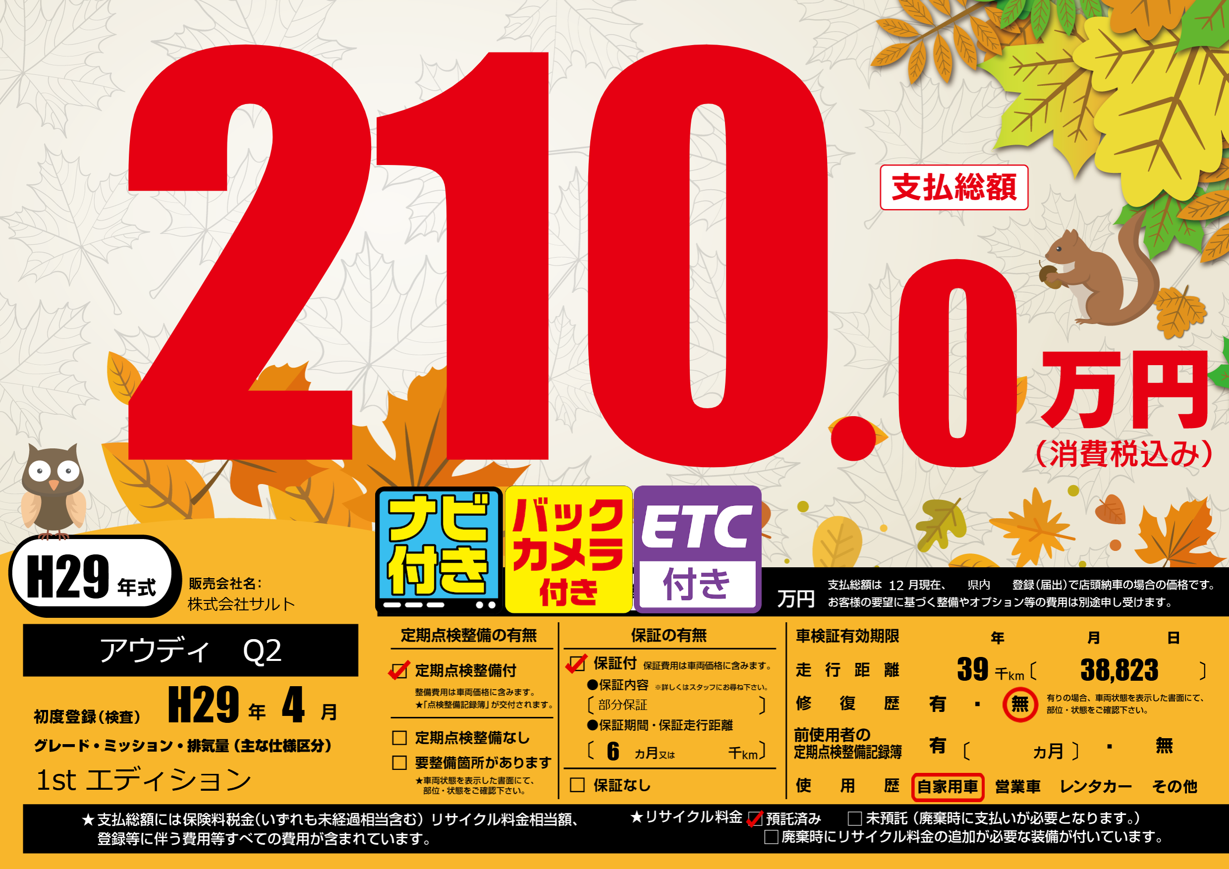 | 車名 | アウディ Q2 | グレード ミッション 排気量 |