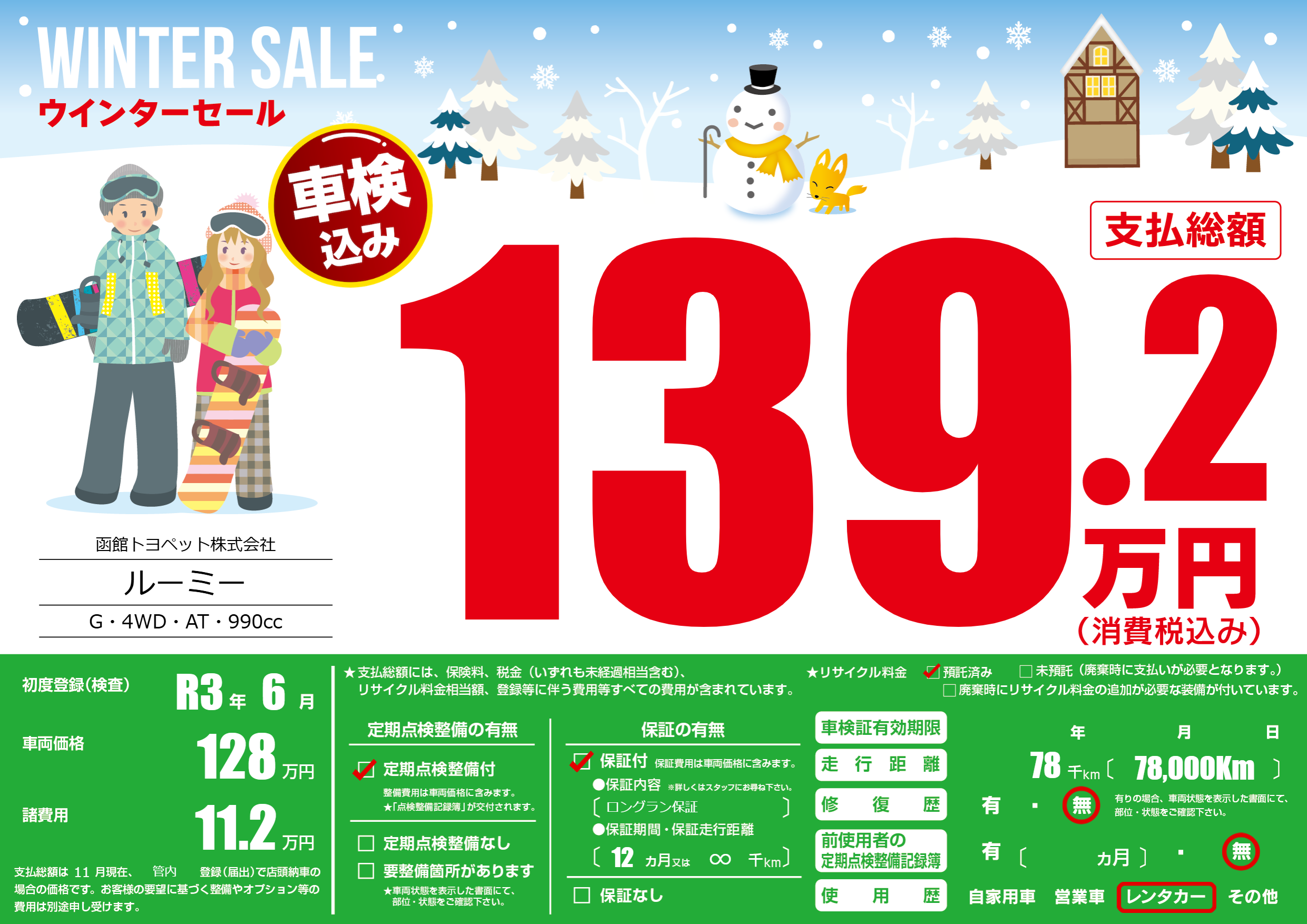 | 走行キロ | 7.8万km | 初年度登録 | R3年6月 |