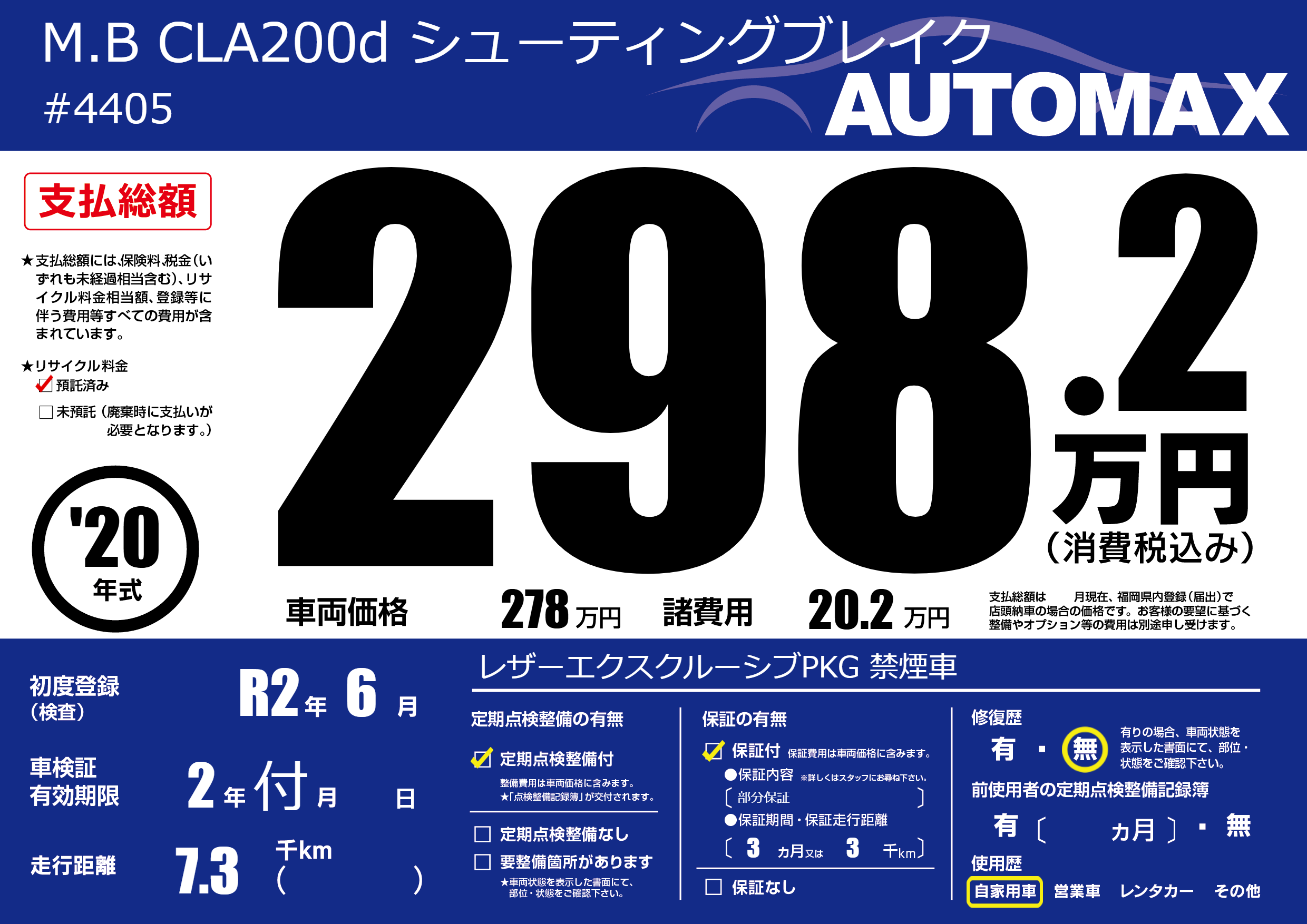 | 車名 | M.B CLA200d シューティングブレイク | グレード ミッション 排気量 |