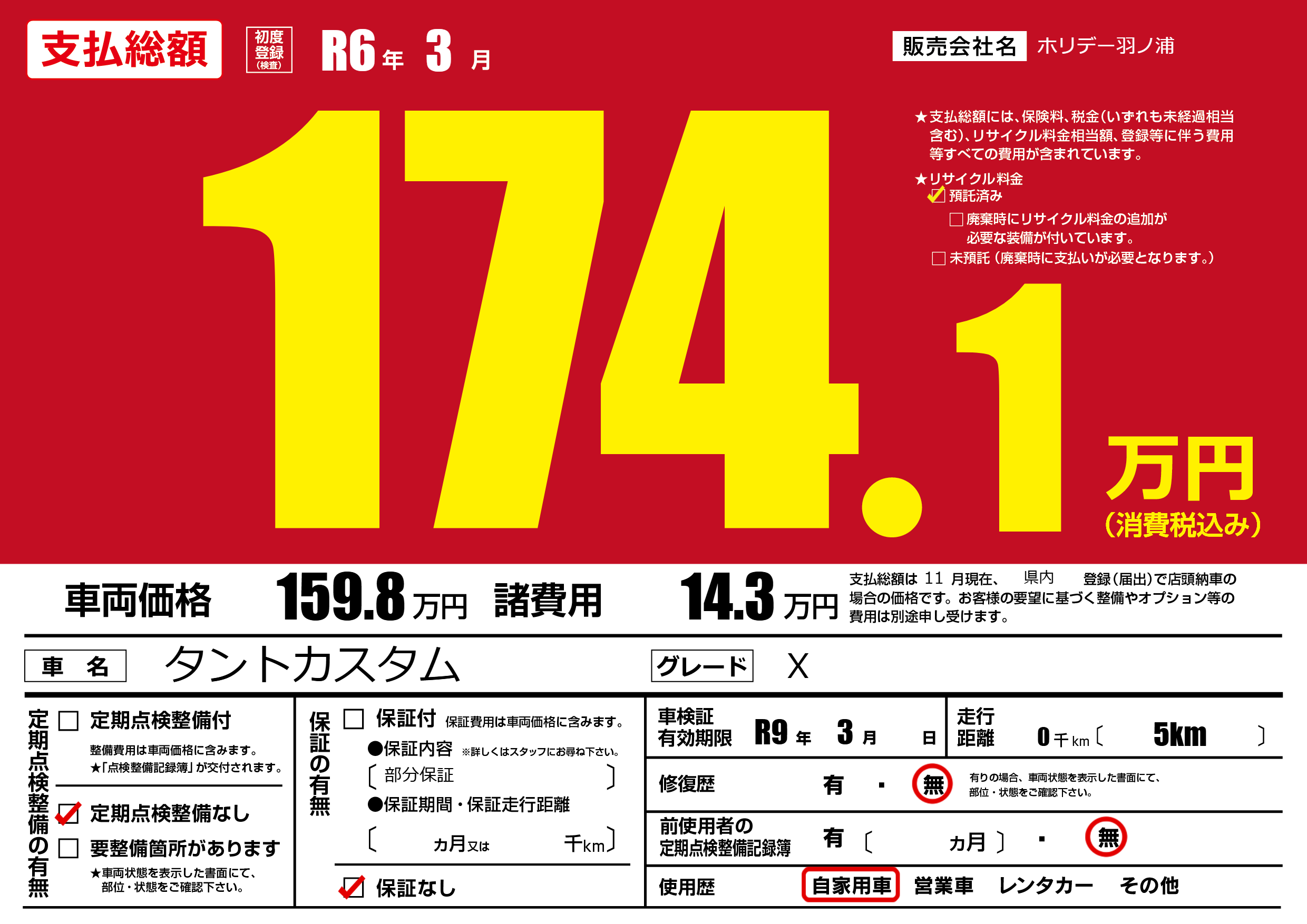 | 走行キロ | - | 初年度登録 | R6年3月 |