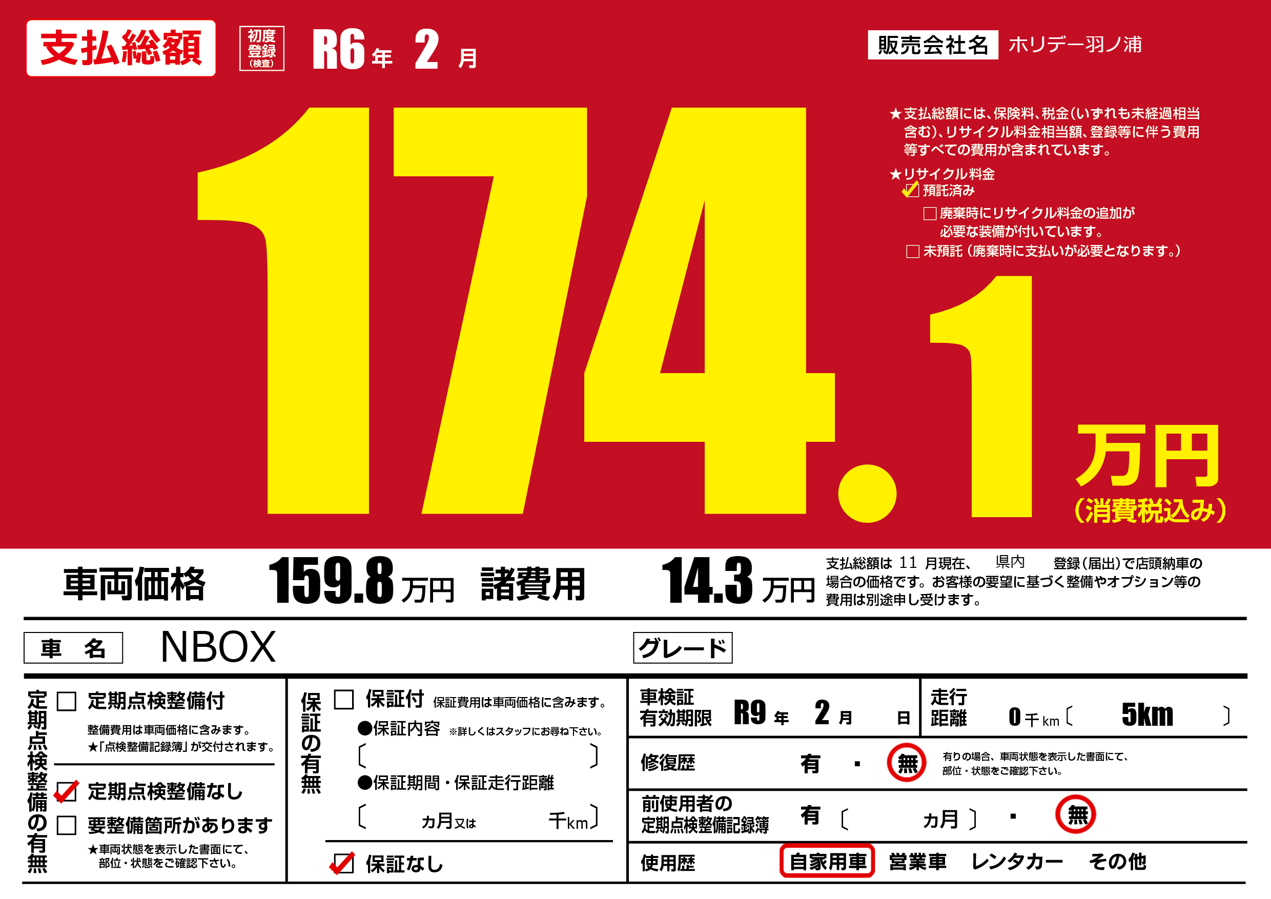 なし | 車検制限 | R9年2月---月 |
