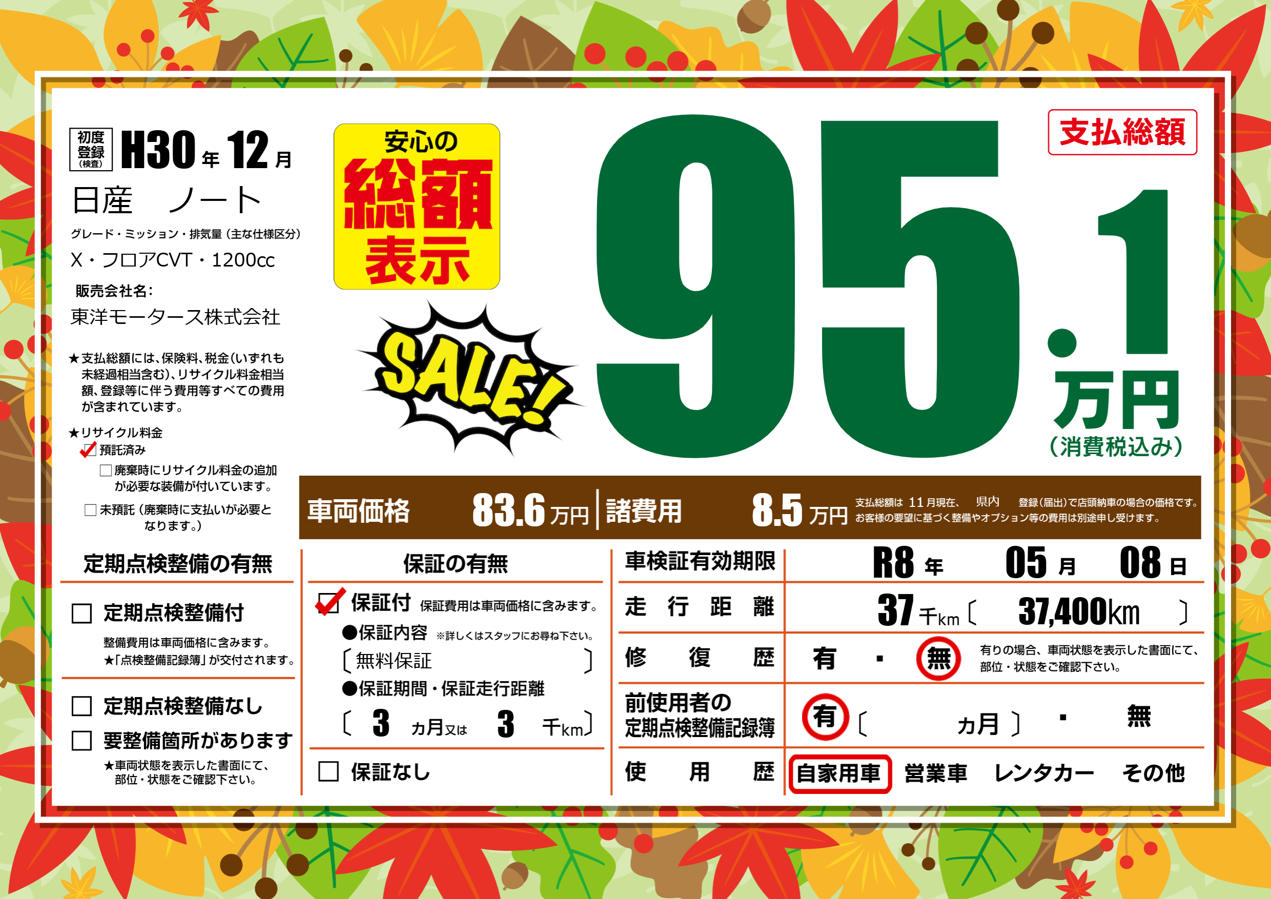 | 車名 | 日産 ノート | グレード ミッション 排気量 |