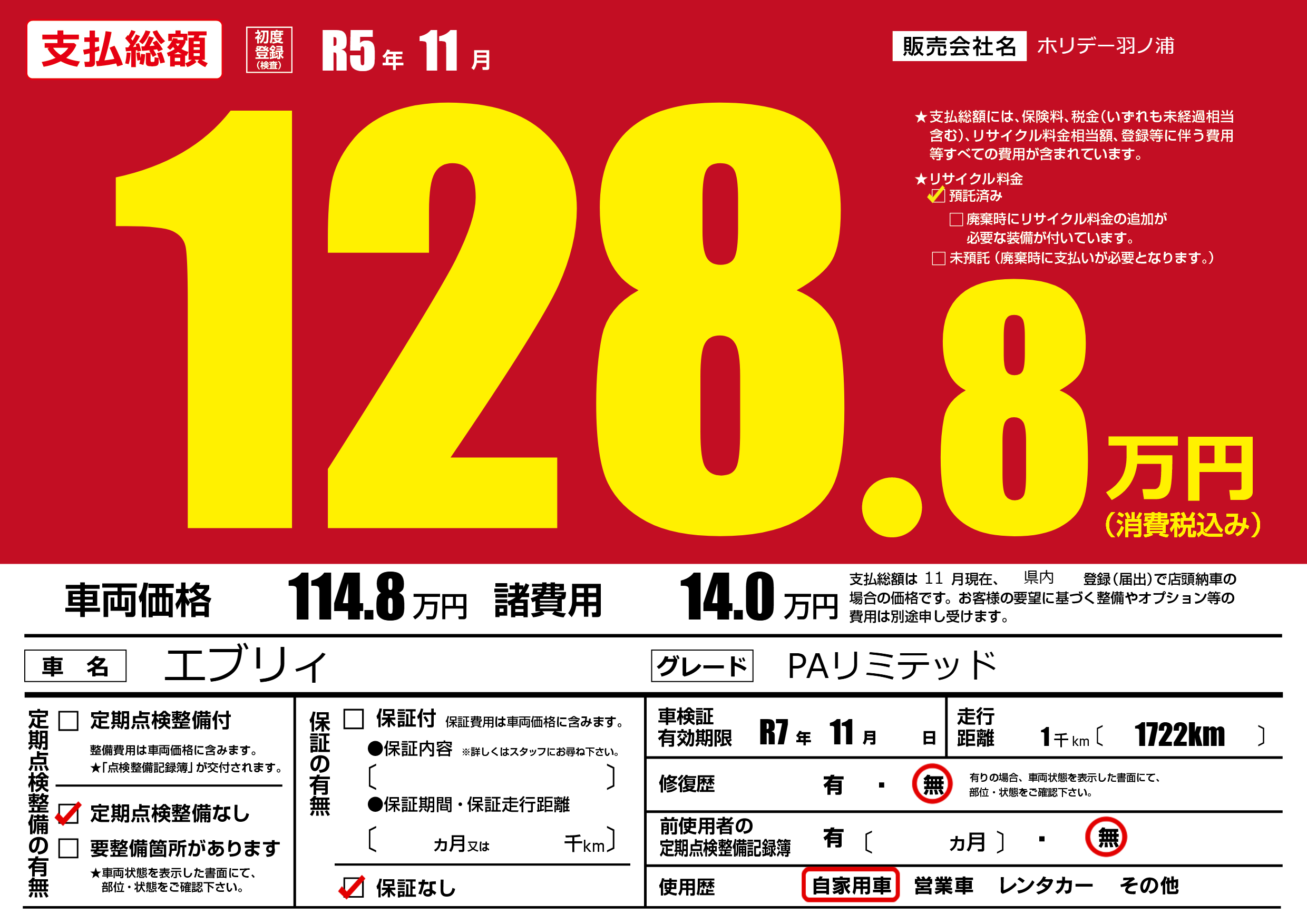 | 走行キロ | 0.1万km | 初年度登録 | R5年11月 |