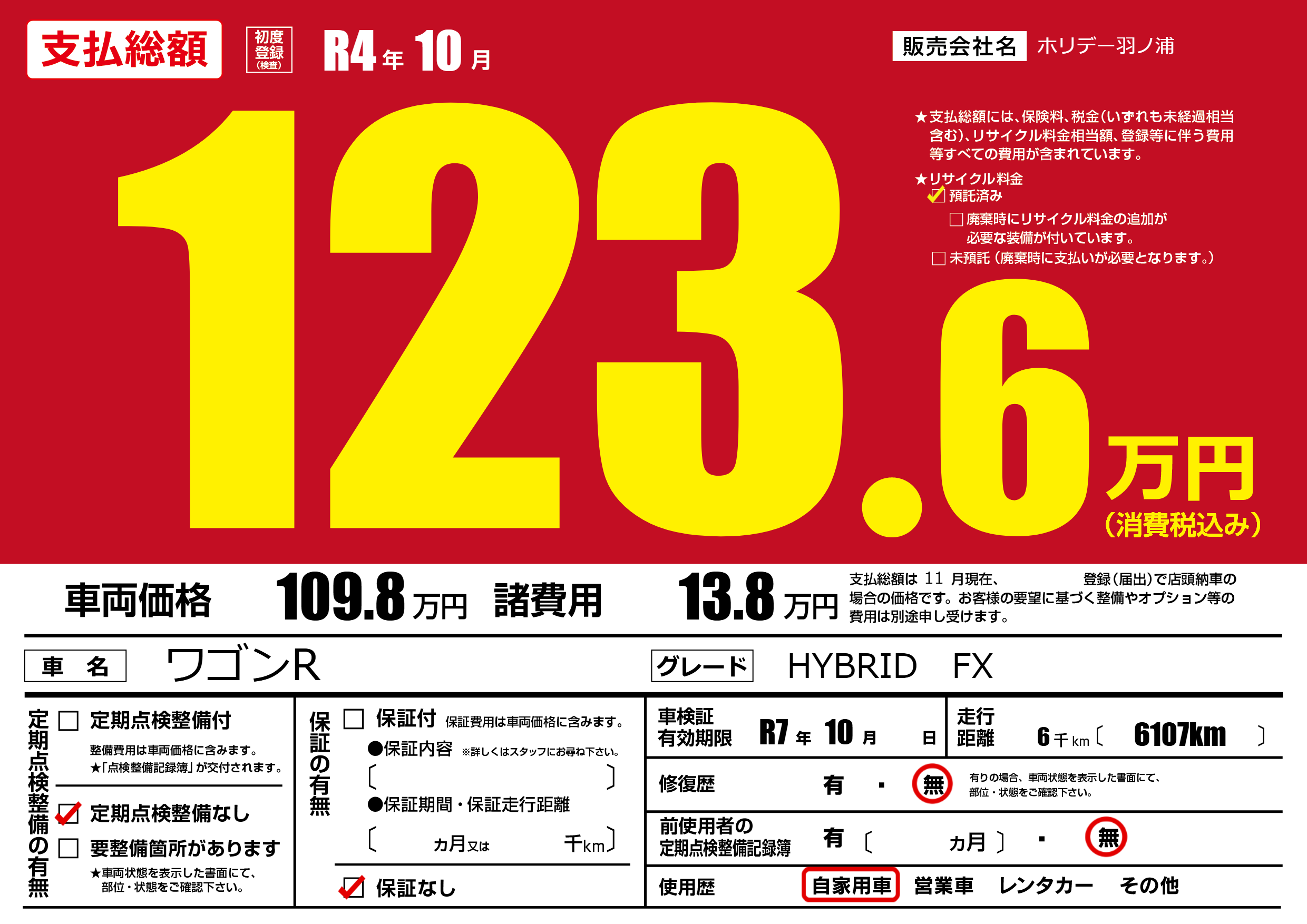 | 車名 | ワゴンR | グレード ミッション 排気量 |