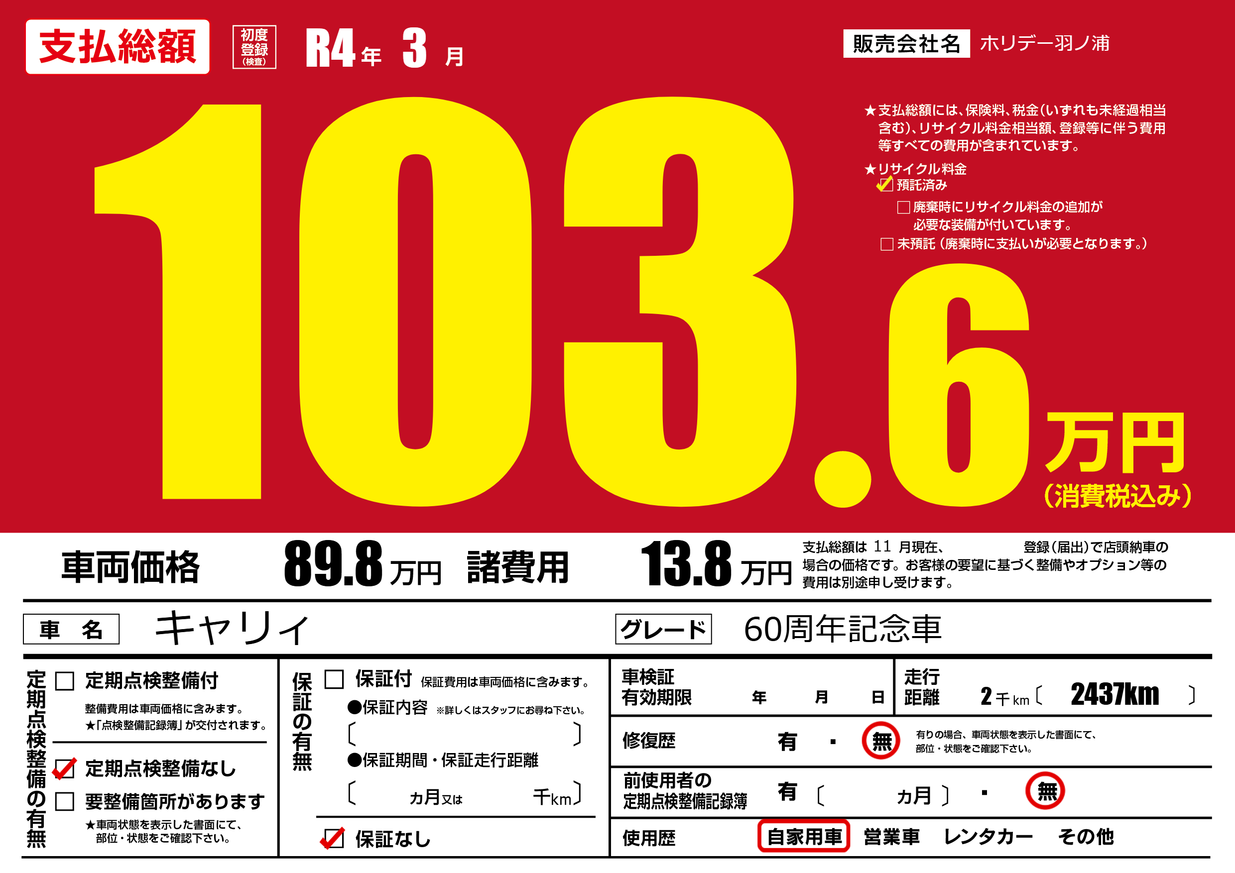 | 定期点検整備 | 定期点検整備なし | ||