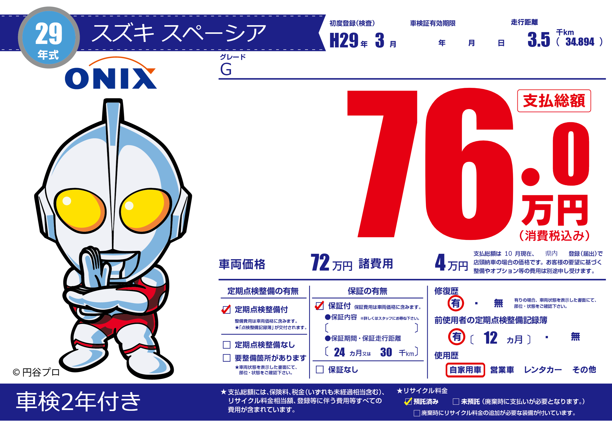 保証付き 保証内容(---) 24ヶ月または(30)千kmまで |