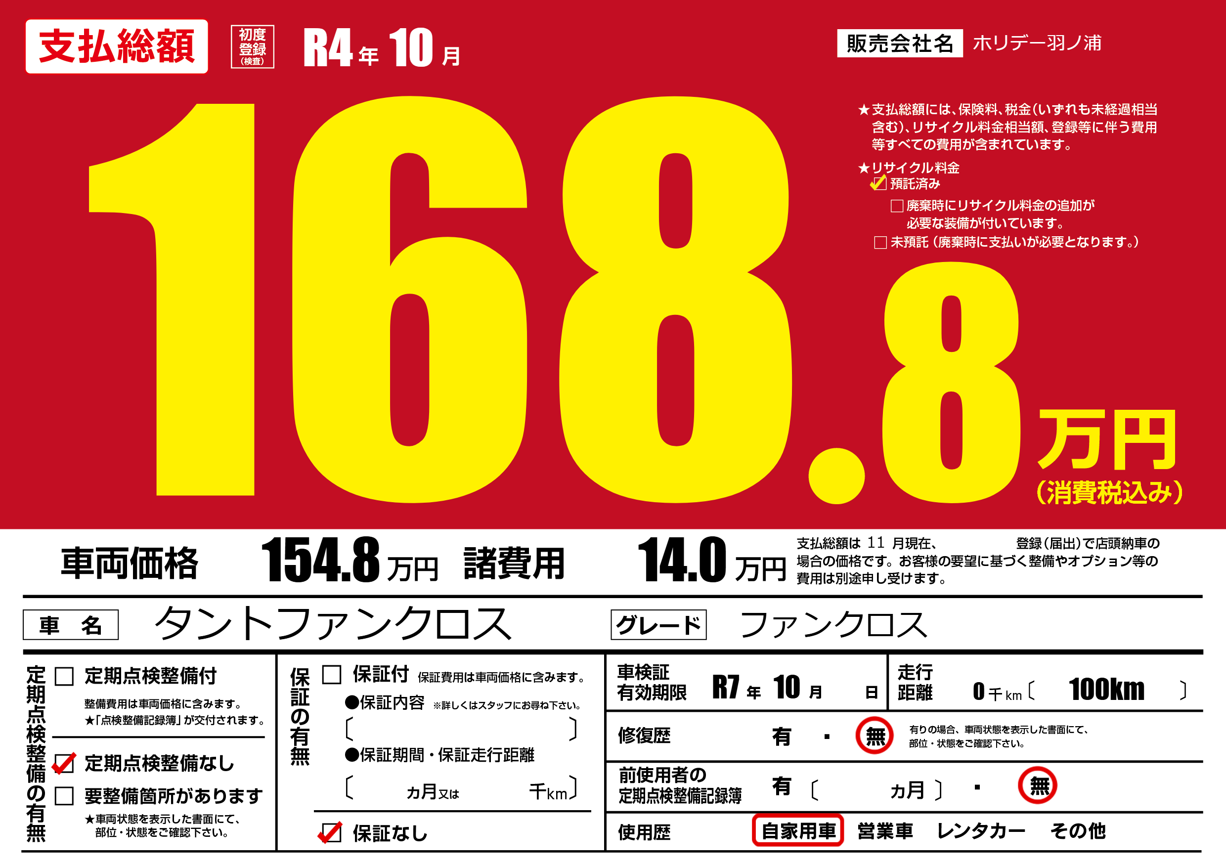 | 車名 | タントファンクロス | グレード ミッション 排気量 |