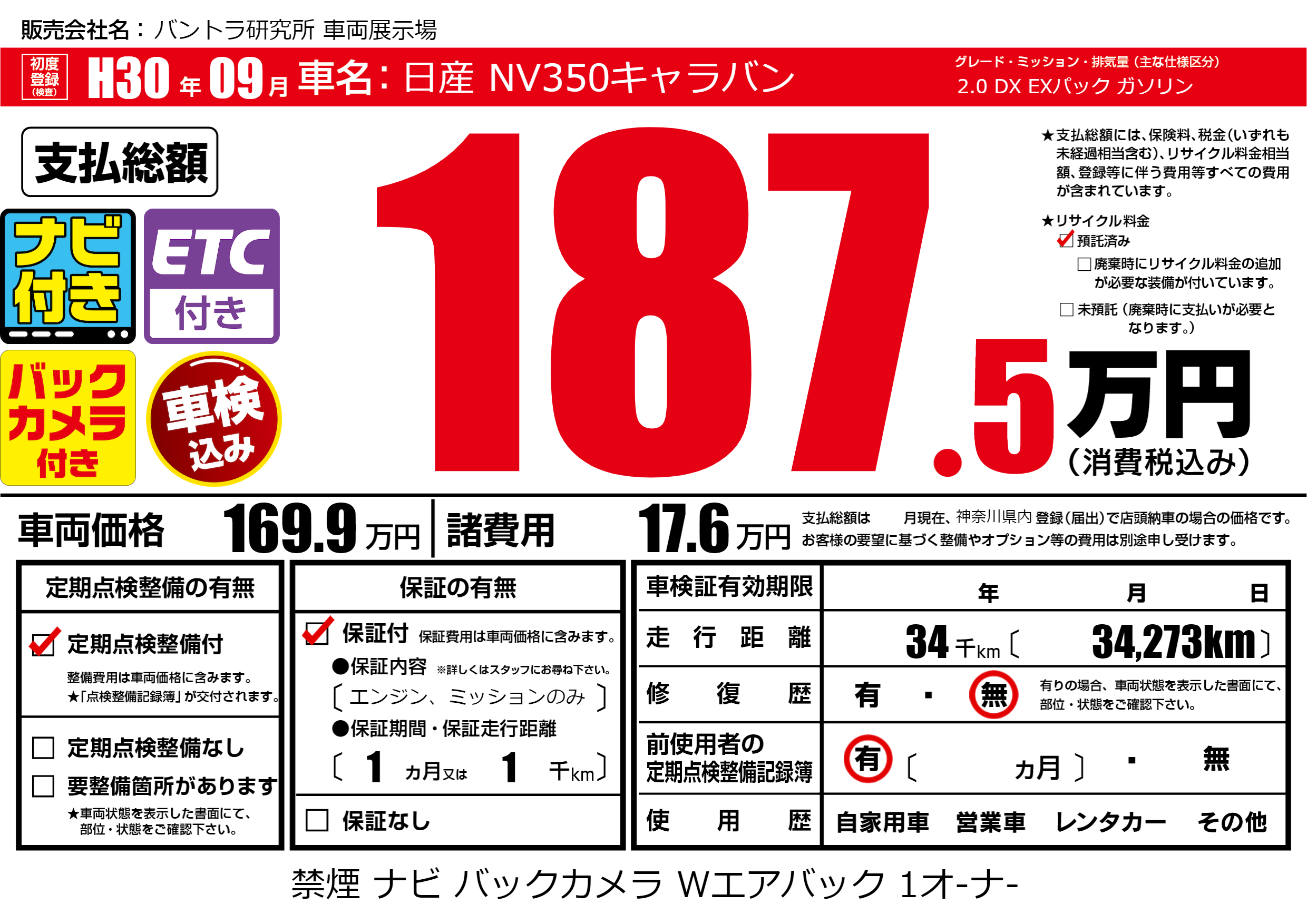 | 初年度登録 | H30年09月 | ||
