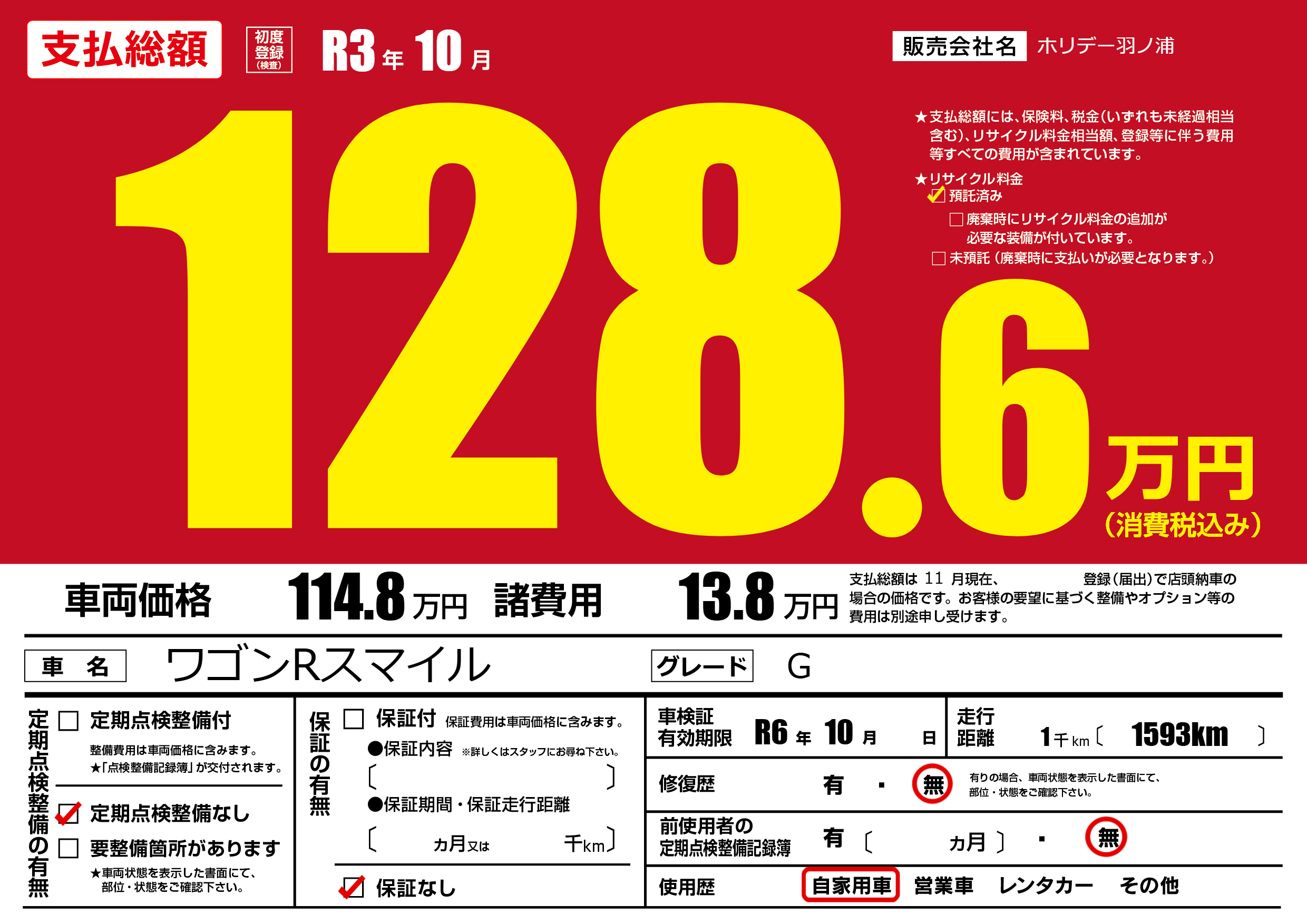 | 車名 | ワゴンRスマイル | グレード ミッション 排気量 |