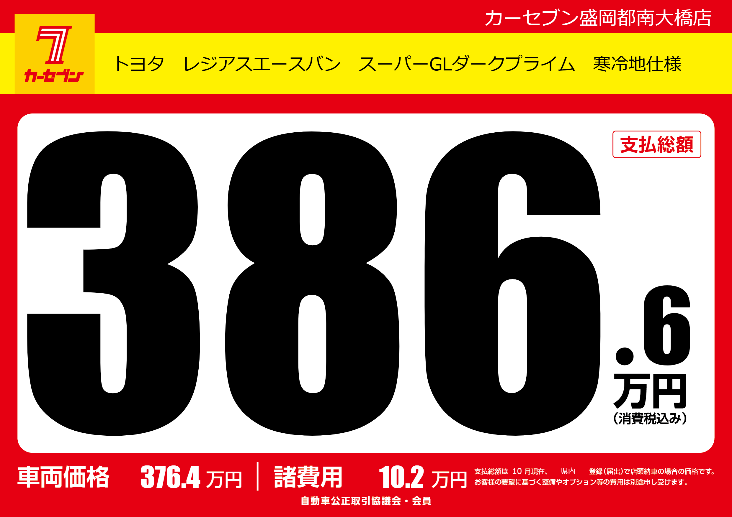 | 車名 | トヨタ レジアスエースバン スーパーGLダークプライム 寒冷地仕様 | グレード ミッション 排気量 |