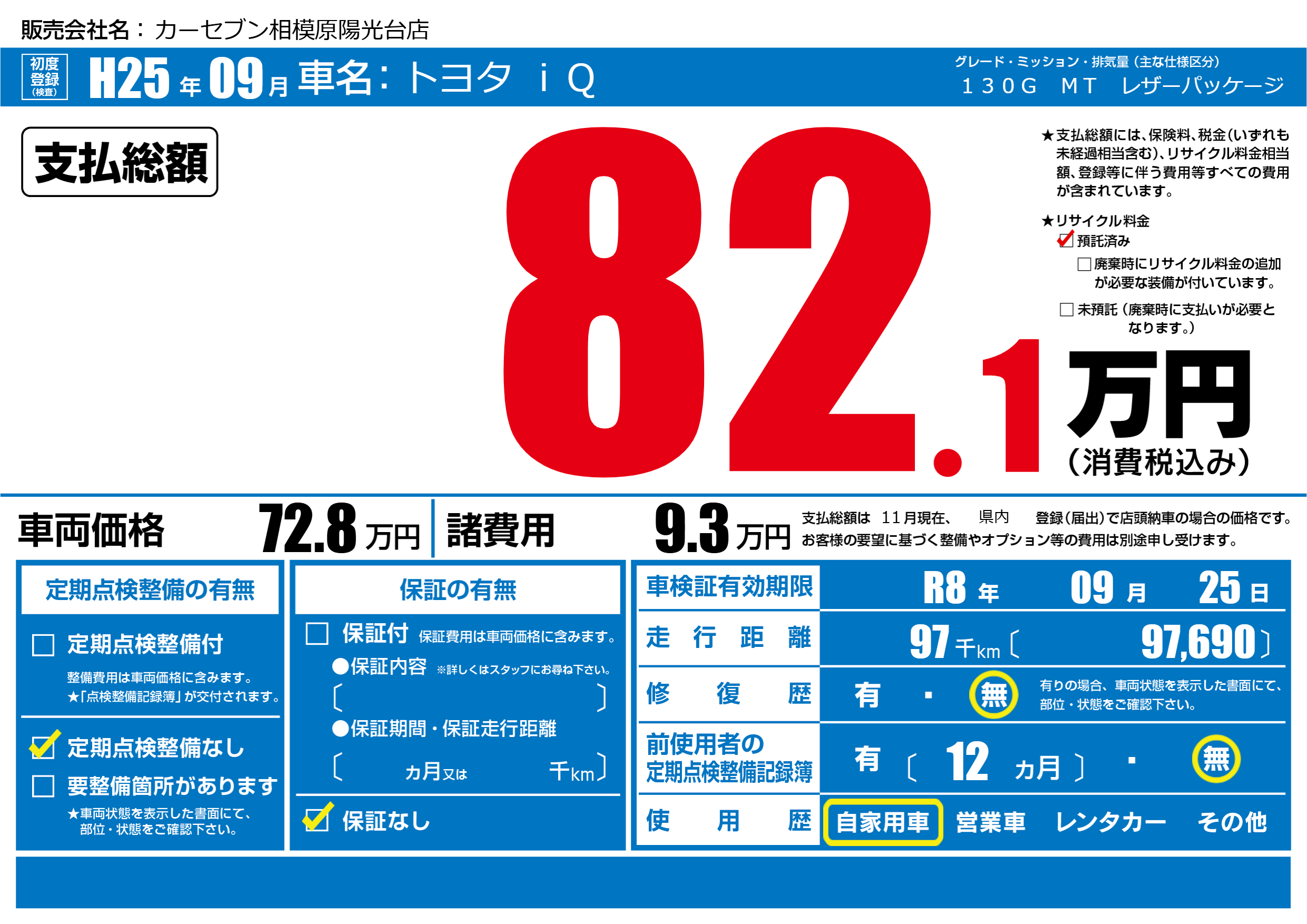 なし | 車検制限 | R8年09月25月 |