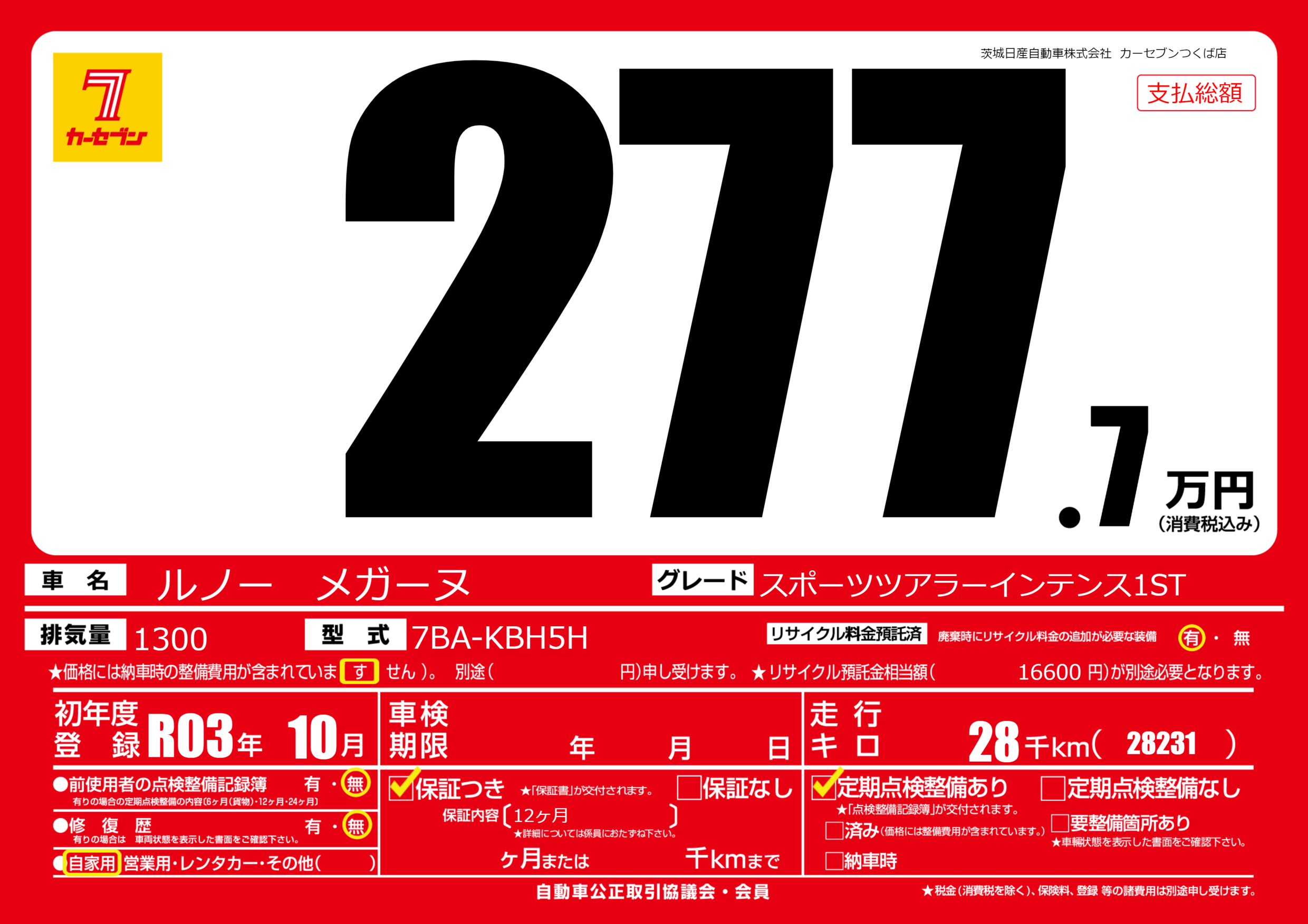 | 定期点検整備 | 定期点検整備あり | ||