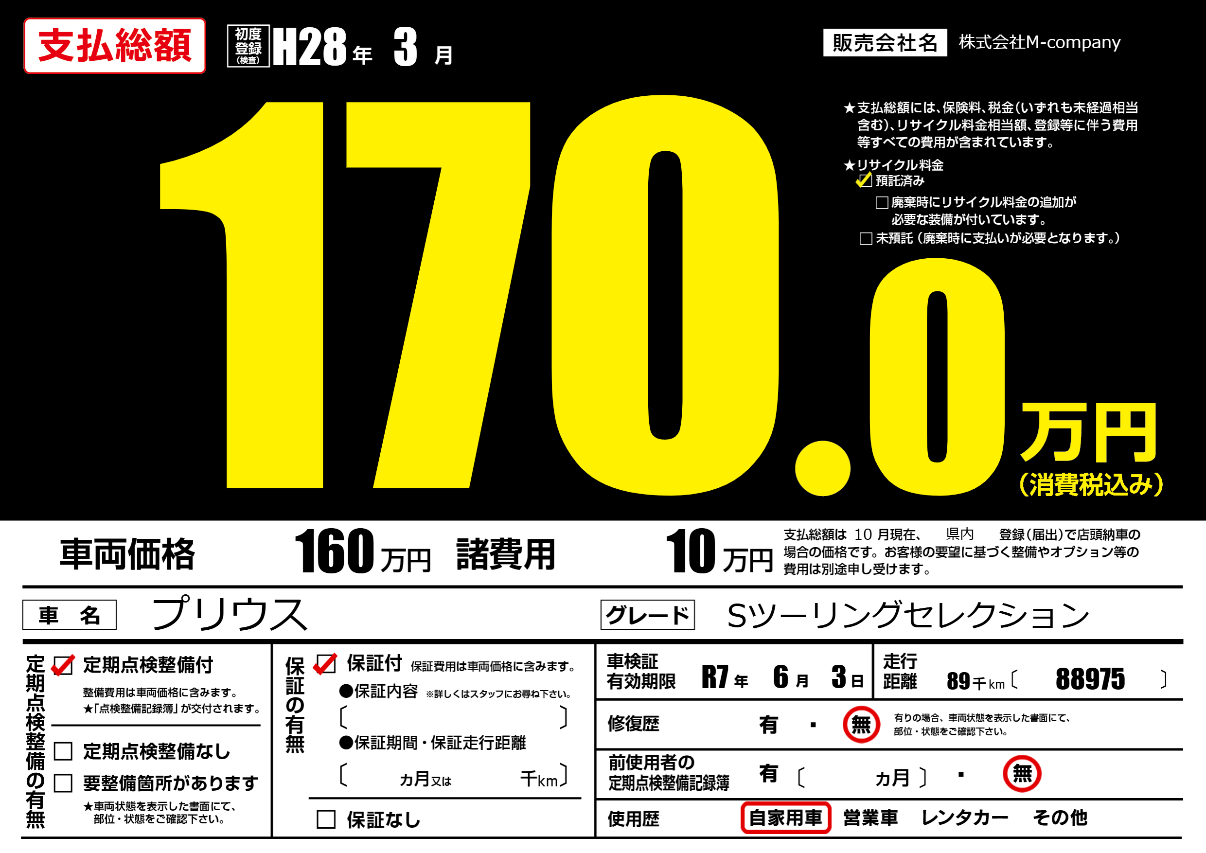 なし | 車検制限 | R7年6月3月 |