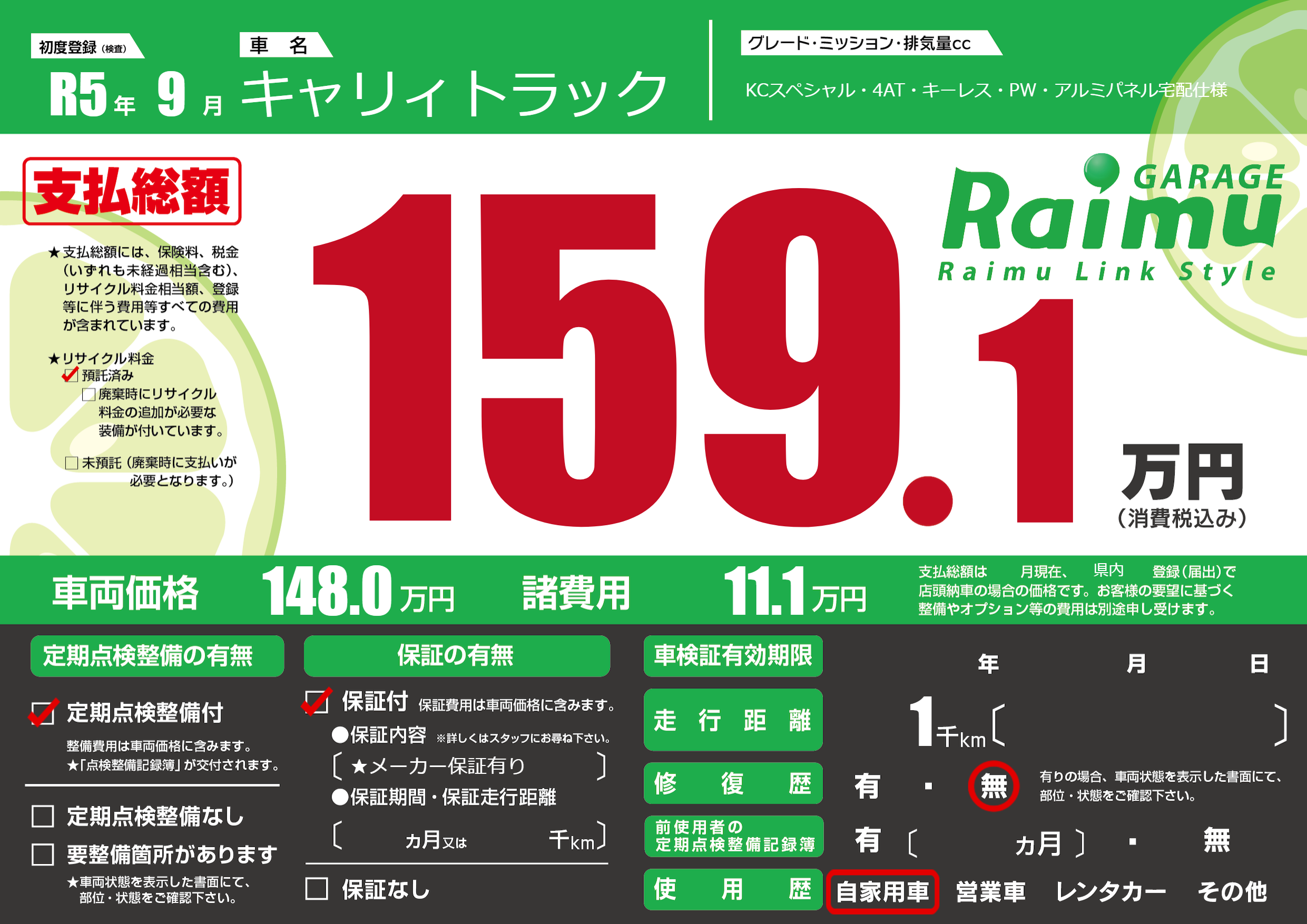 保証付き 保証内容(★メーカー保証有り) ---ヶ月または()千kmまで |