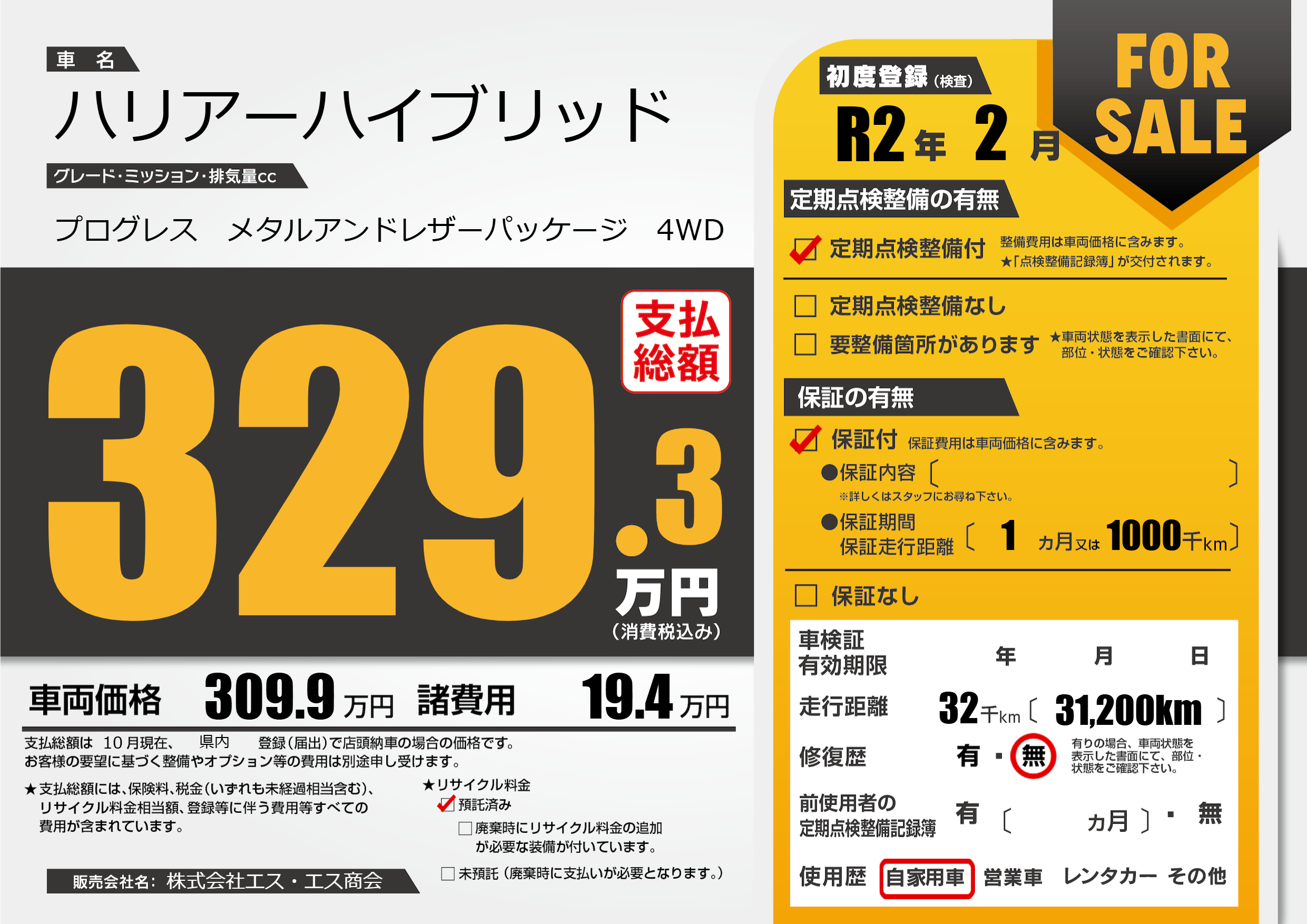 | 初年度登録 | R2年2月 | ||