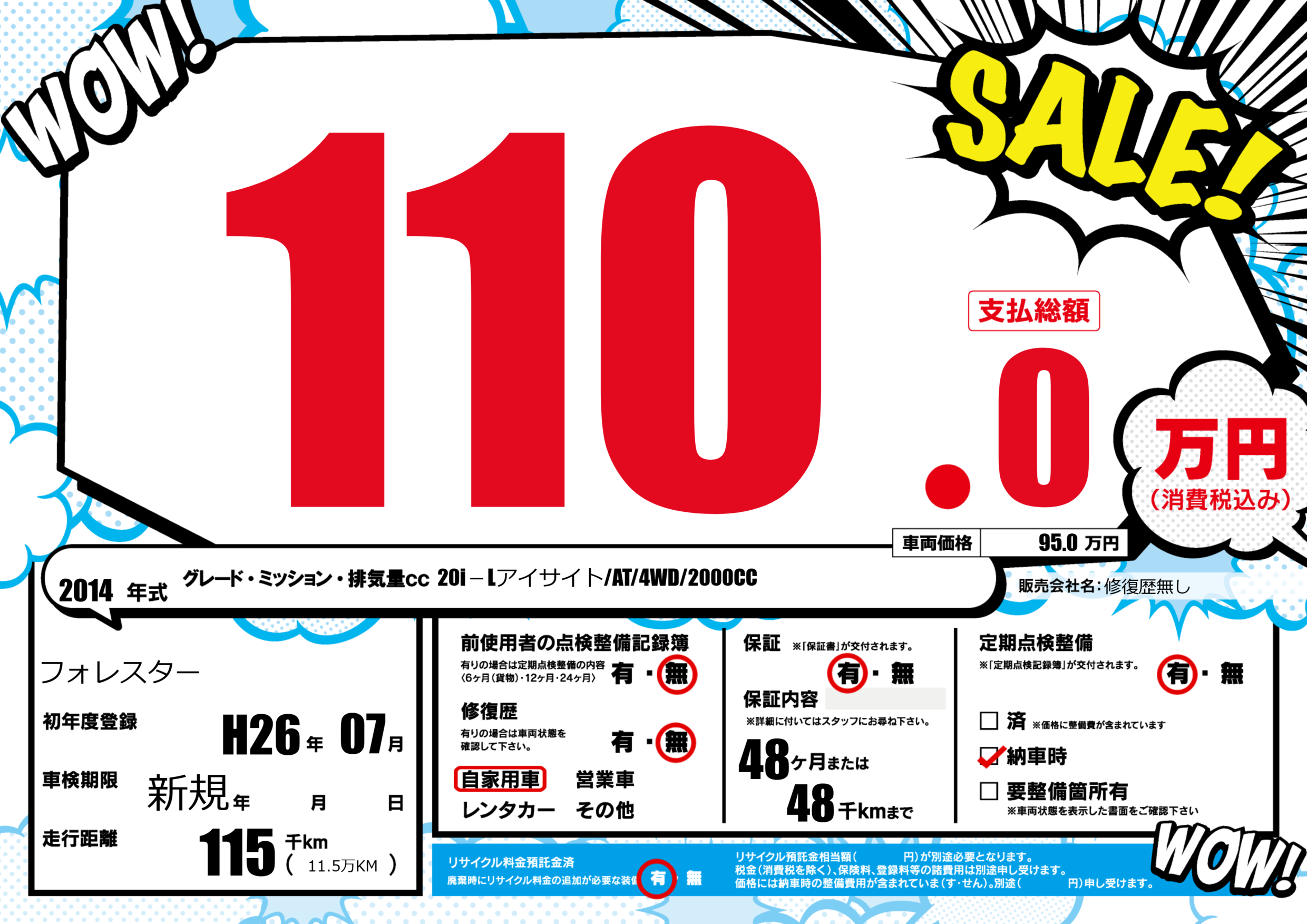 保証付き 保証内容(---) 48ヶ月または(48)千kmまで |