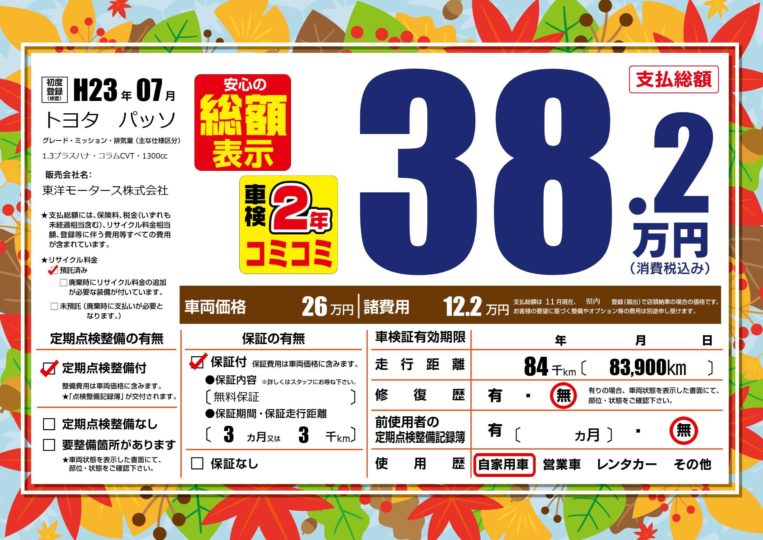 | 定期点検整備 | 定期点検整備あり | ||