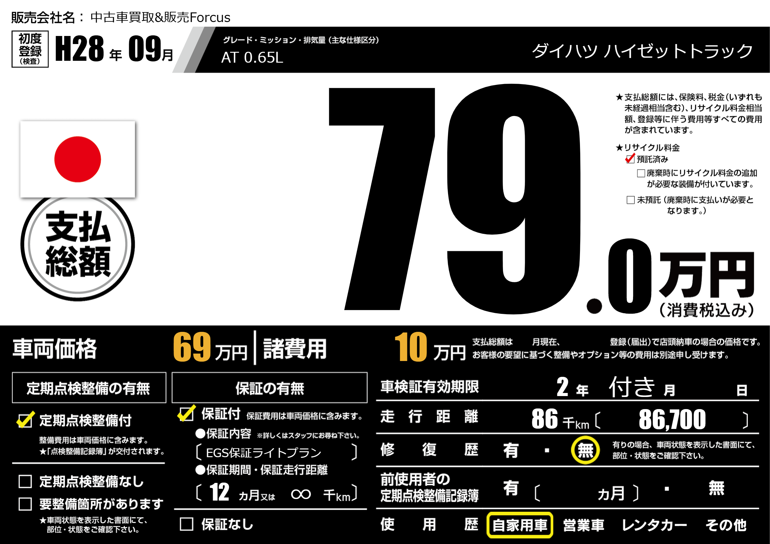 保証付き 保証内容(EGS保証ライトプラン) 12ヶ月または(∞)千kmまで |