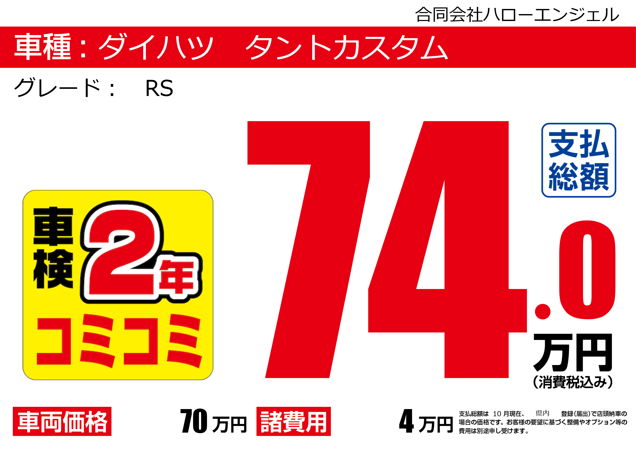 | 車名 | ダイハツ タントカスタム | グレード ミッション 排気量 |