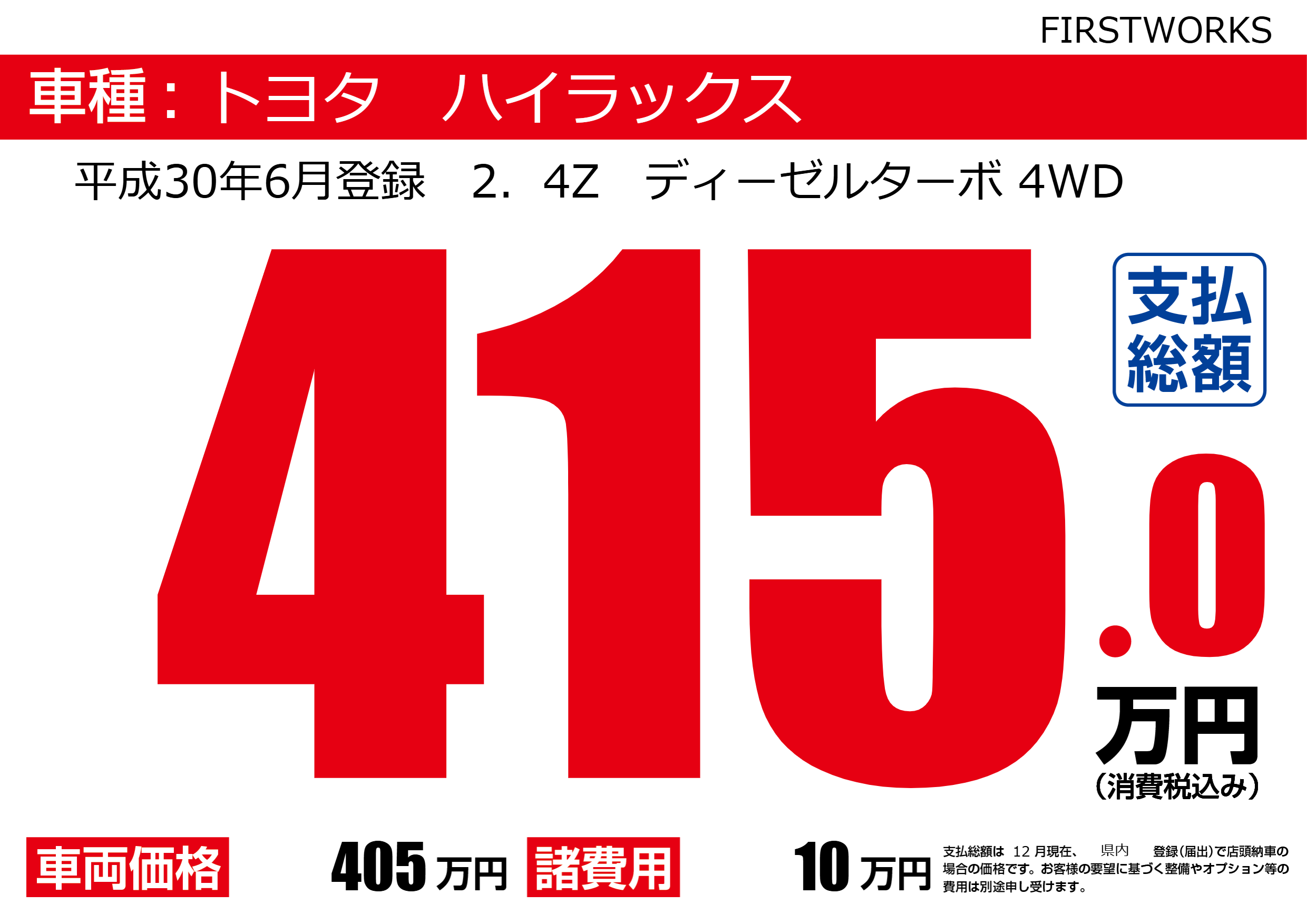| 車名 | トヨタ ハイラックス | グレード ミッション 排気量 |