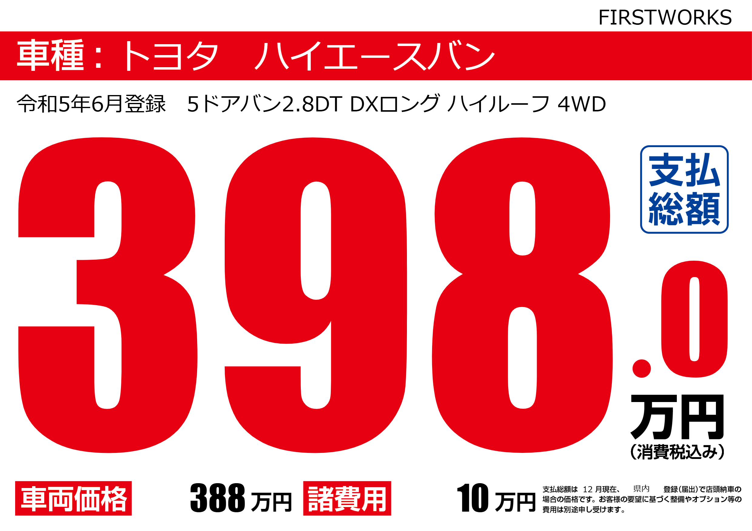 令和5年6月登録 5ドアバン2.8DT DXロング ハイルーフ 4WD |