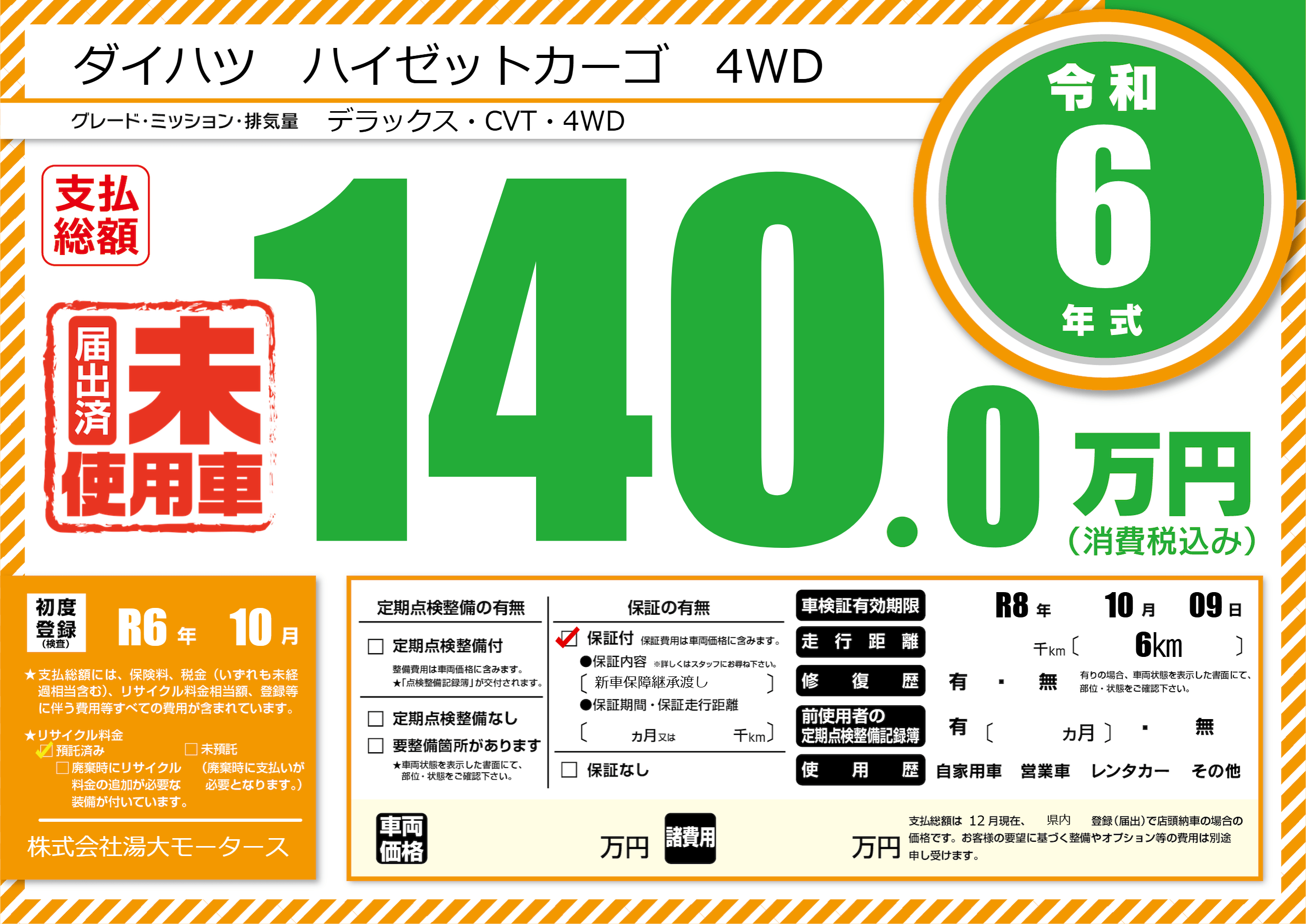 | 走行キロ | - | 初年度登録 | R6年10月 |