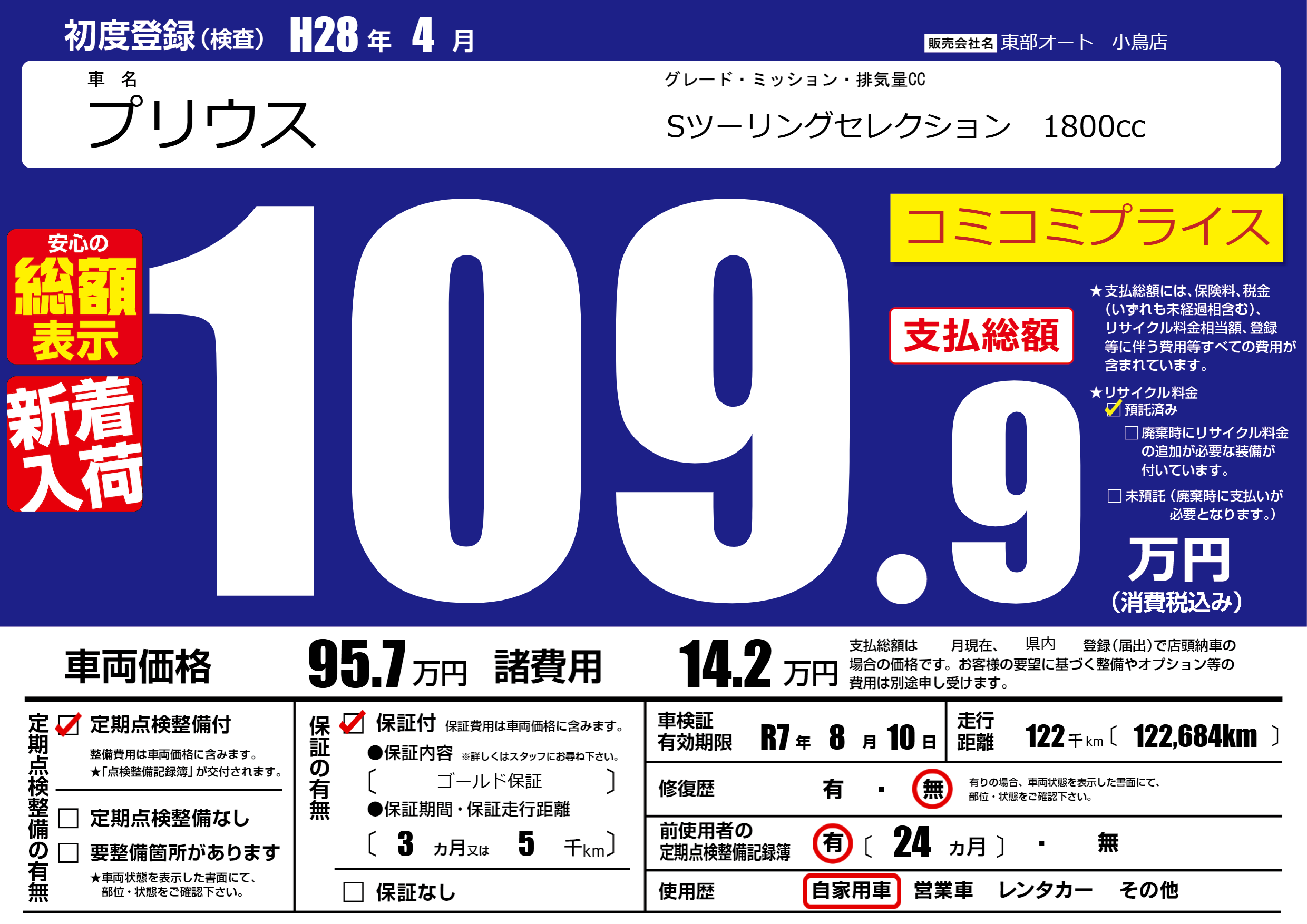 保証付き 保証内容( ゴールド保証) 3ヶ月または5千km |