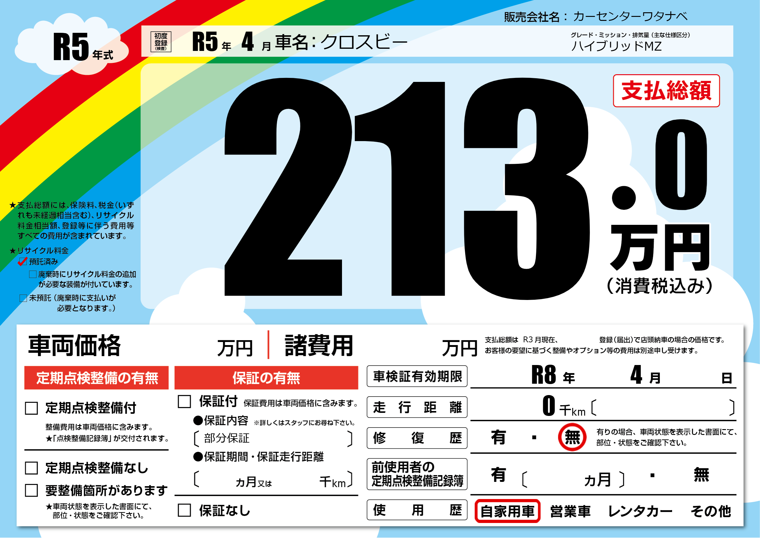 | 車名 | クロスビー | グレード ミッション 排気量 |