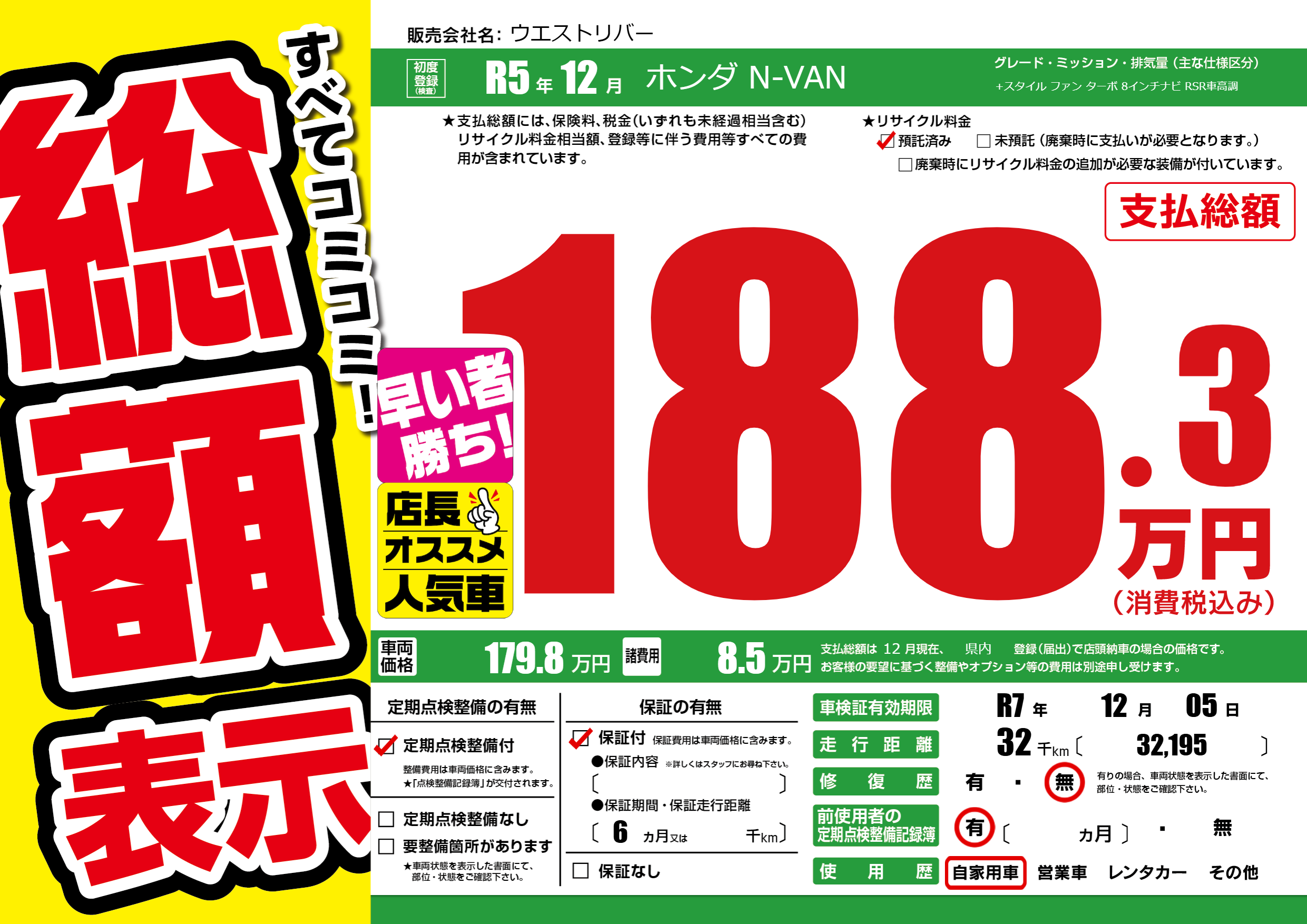 | 車検制限 | R7年 12月 05日 | ||