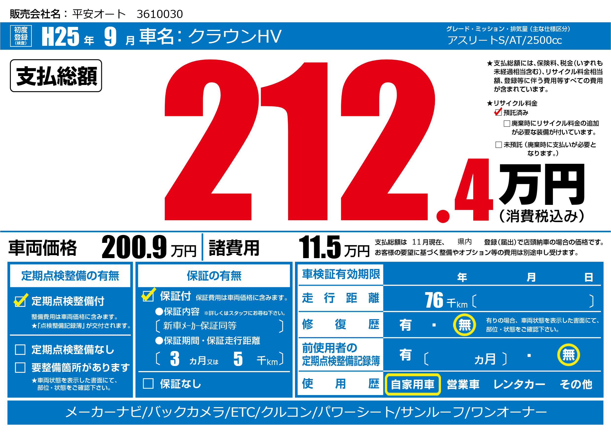 | 走行キロ | 7.6万km | ||