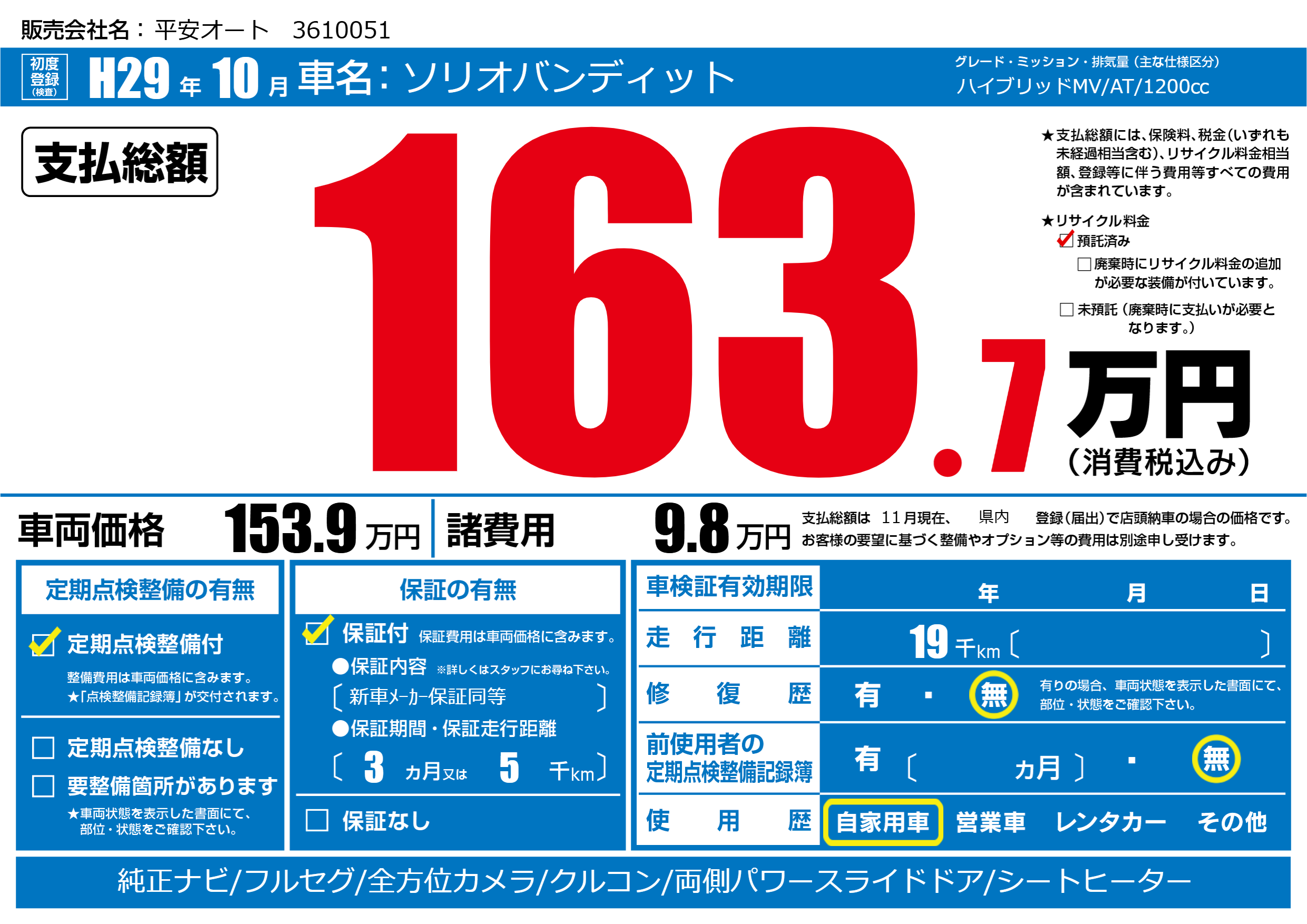 | 車名 | ソリオバンディット | グレード ミッション 排気量 |