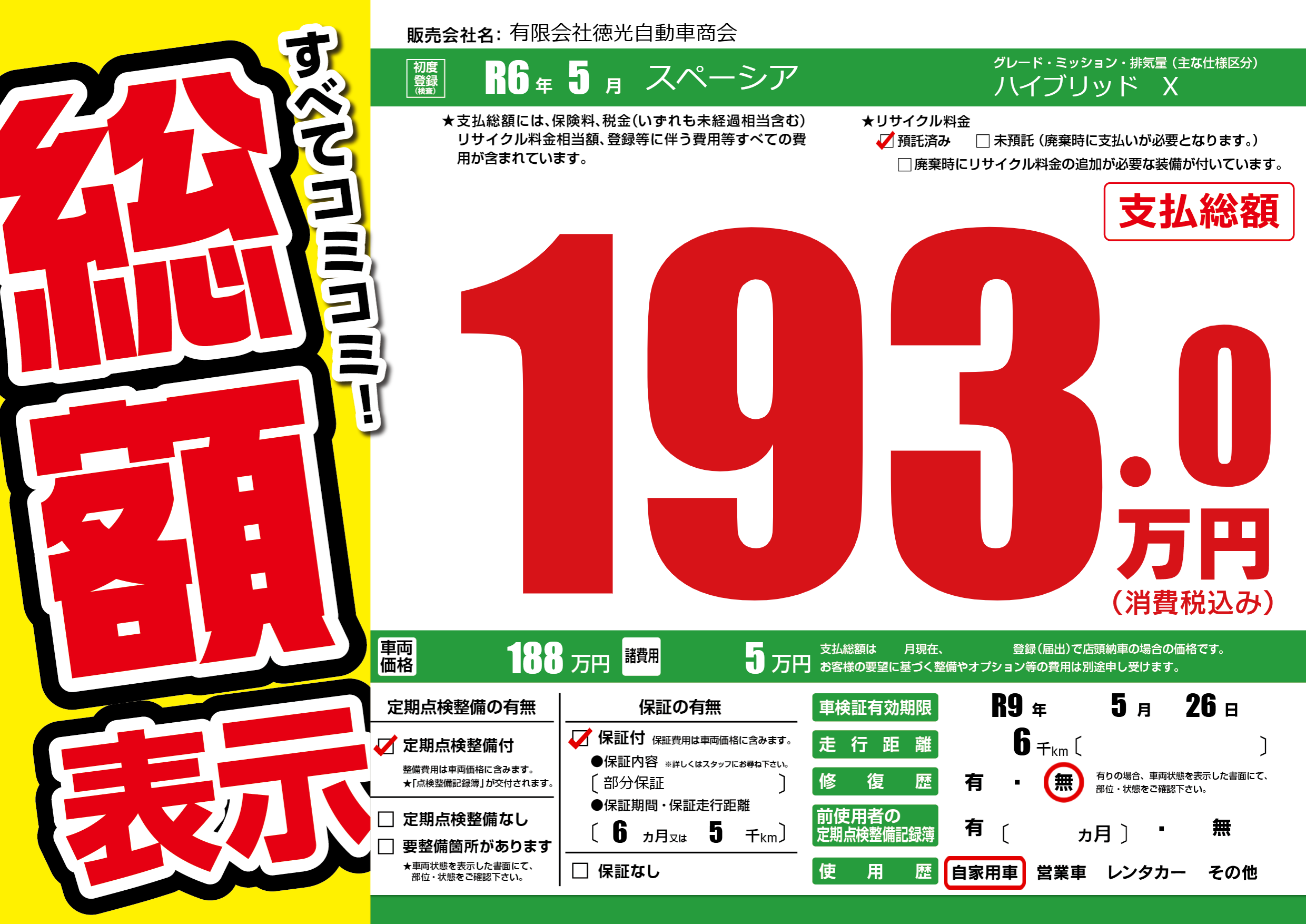 なし | 車検制限 | R9年5月26月 |