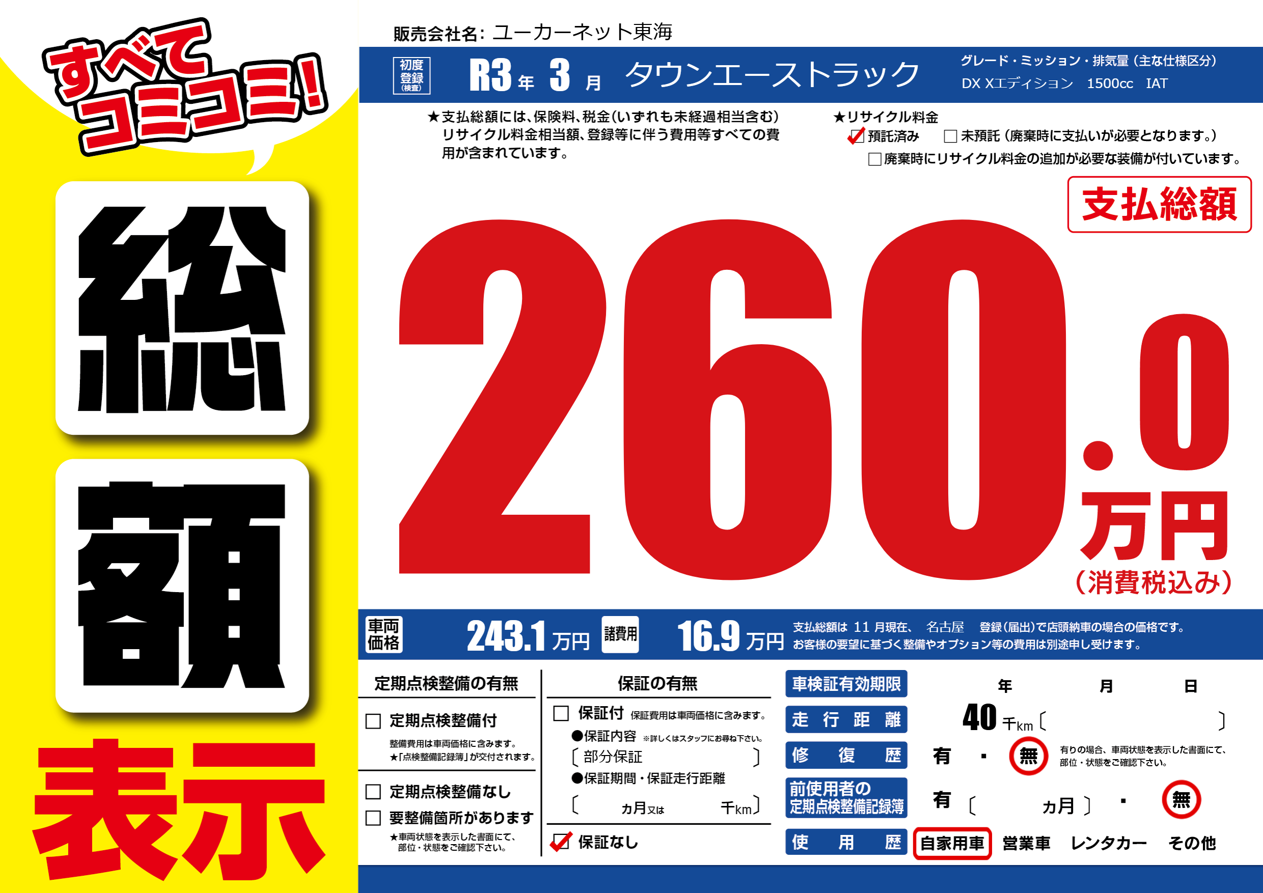 | 車名 | タウンエーストラック | グレード ミッション 排気量 |