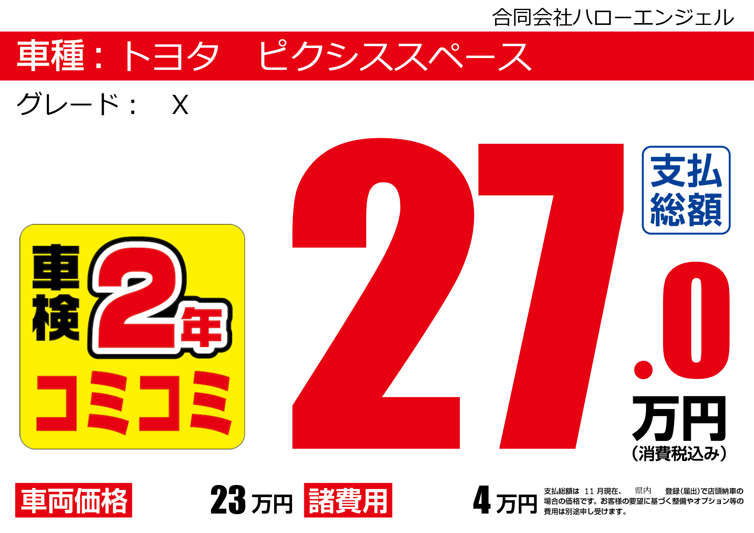 | 車名 | トヨタ ピクシススペース | グレード ミッション 排気量 |