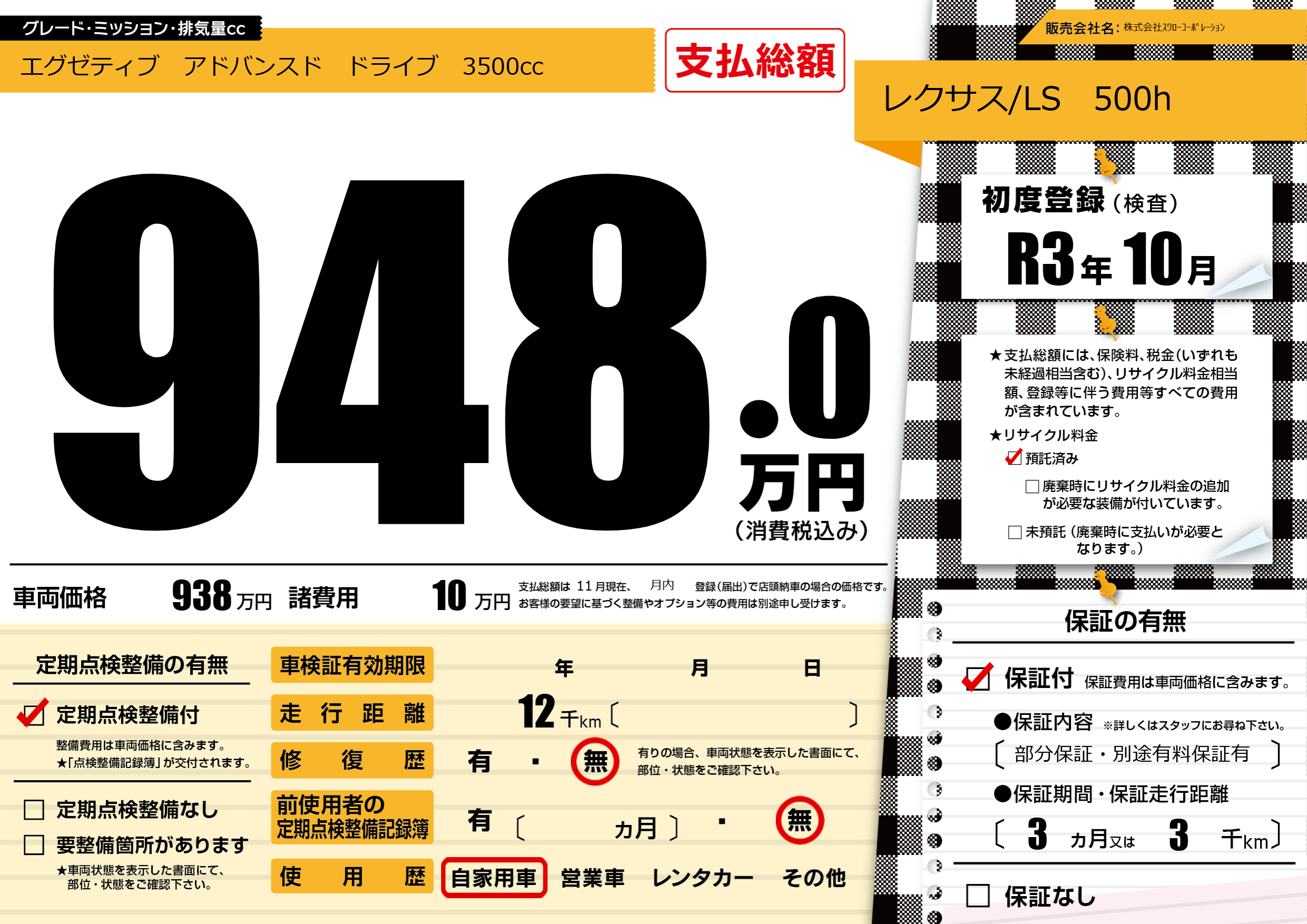 保証付き 保証内容(部分保証・別途有料保証有) 3ヶ月または(3)千kmまで |