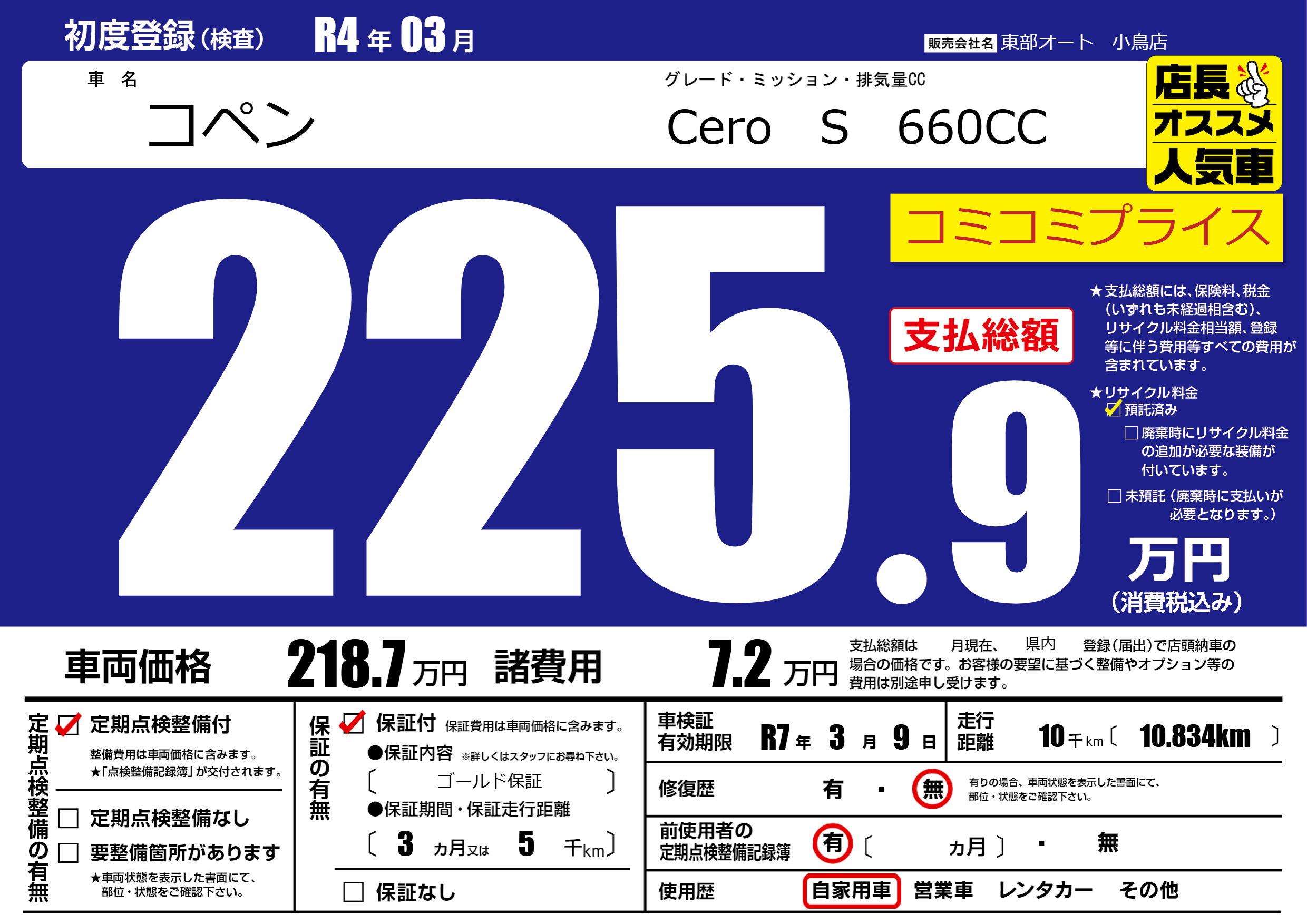 | 車検制限 | R7年 3月 9日 | ||