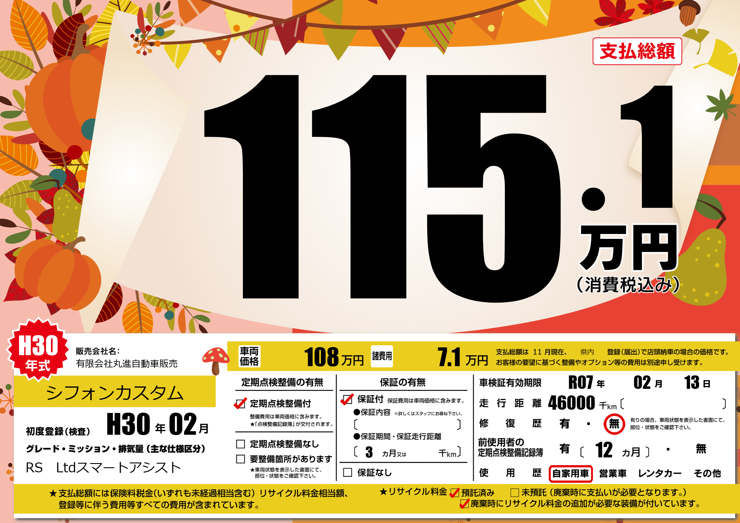 | 走行キロ | 4600万km | 初年度登録 | H30年02月 |