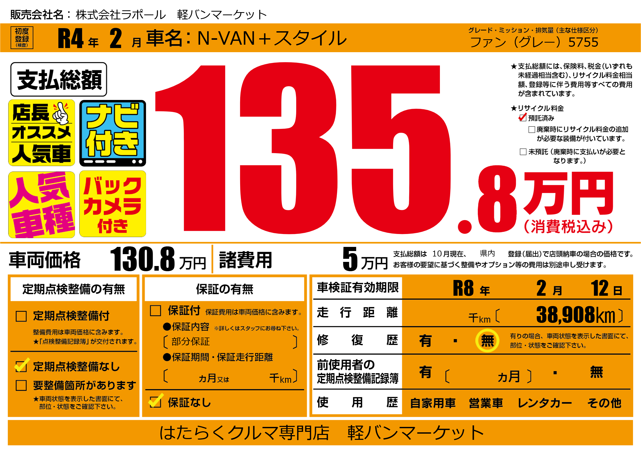 株式会社ラポール 軽バンマーケットの展示車