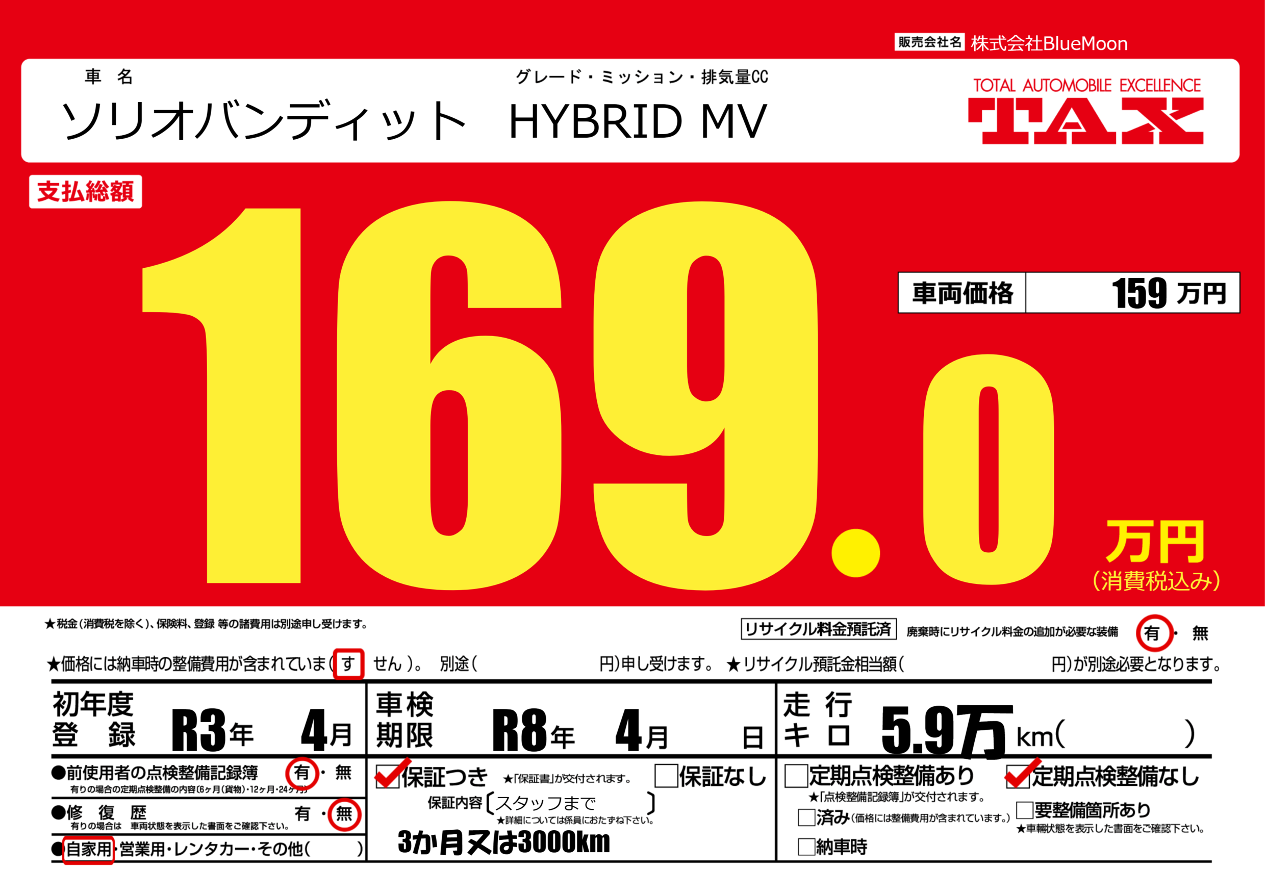 | 車名 | ソリオバンディット | グレード ミッション 排気量 |