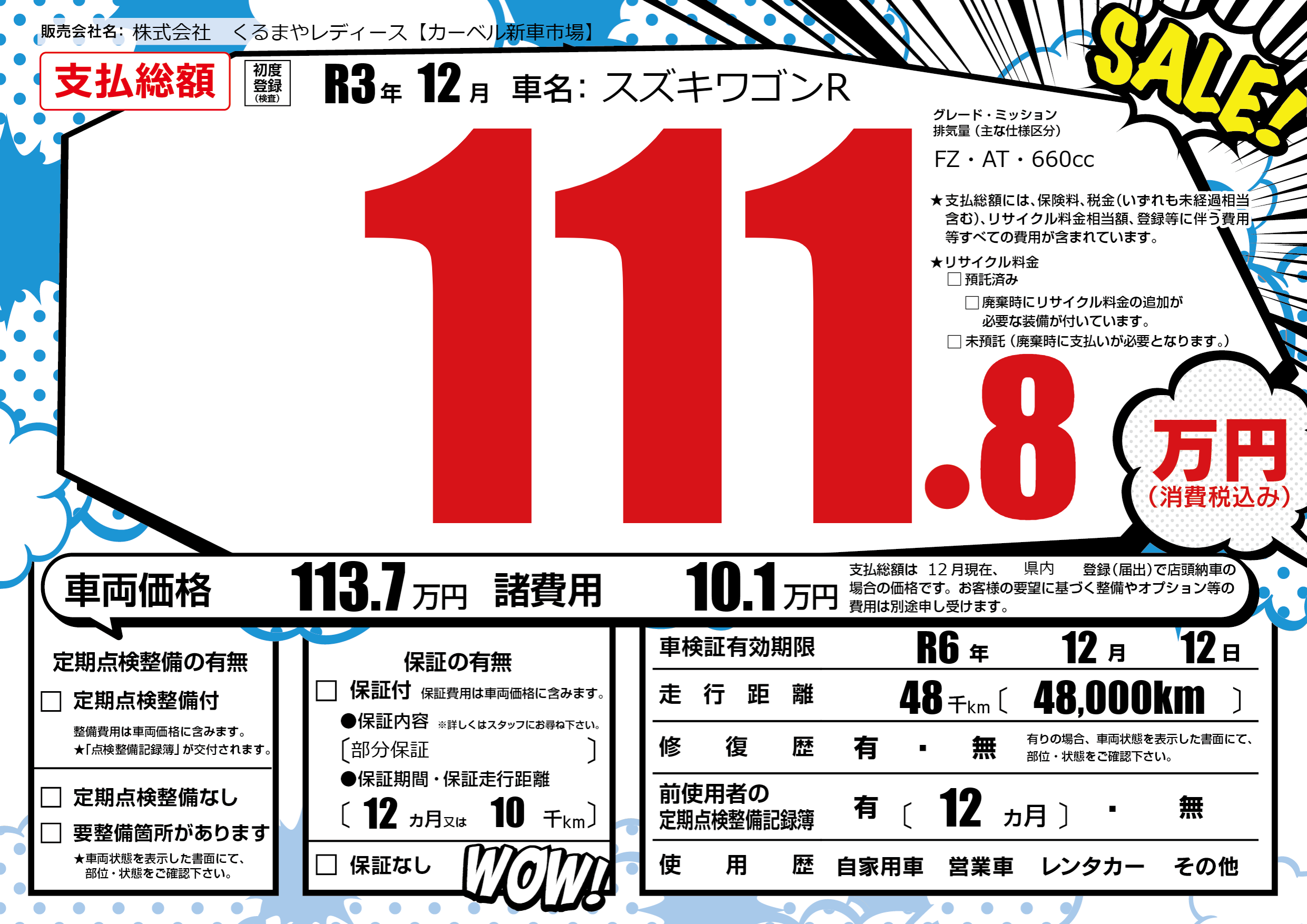 | 車名 | スズキワゴンR | グレード ミッション 排気量 |