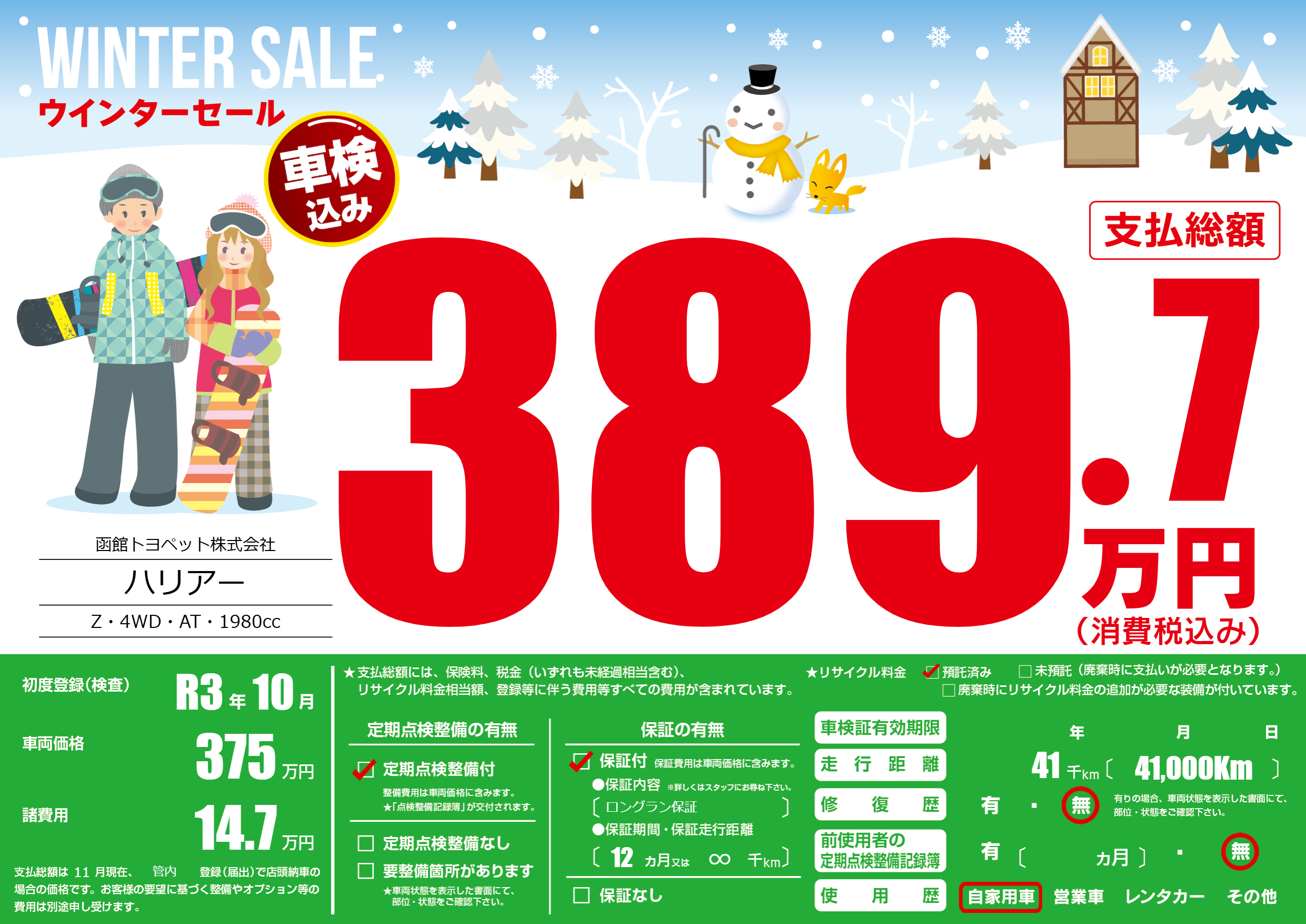 | 走行キロ | 4.1万km | 初年度登録 | R3年10月 |
