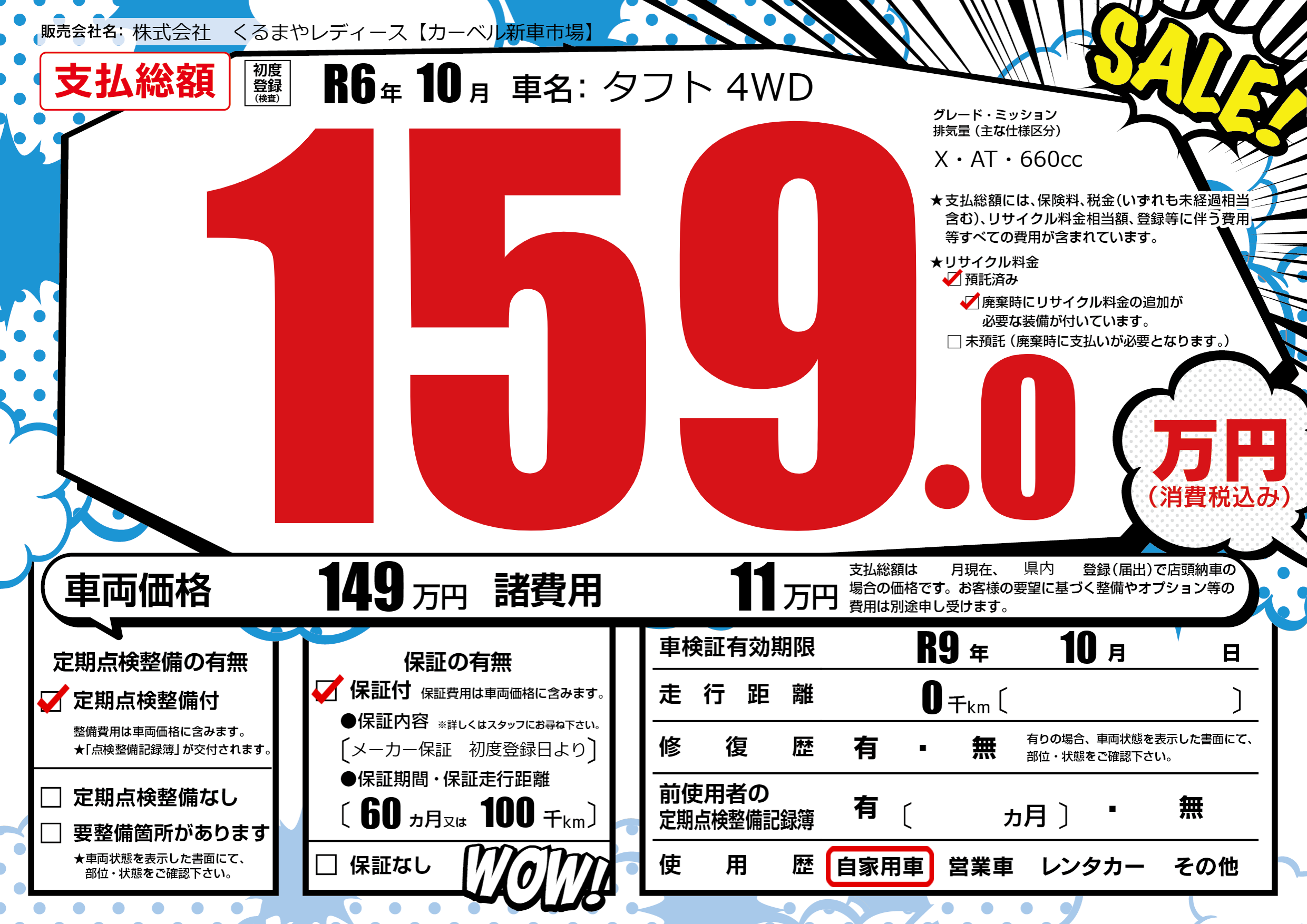 | 車名 | タフト 4WD | グレード ミッション 排気量 |