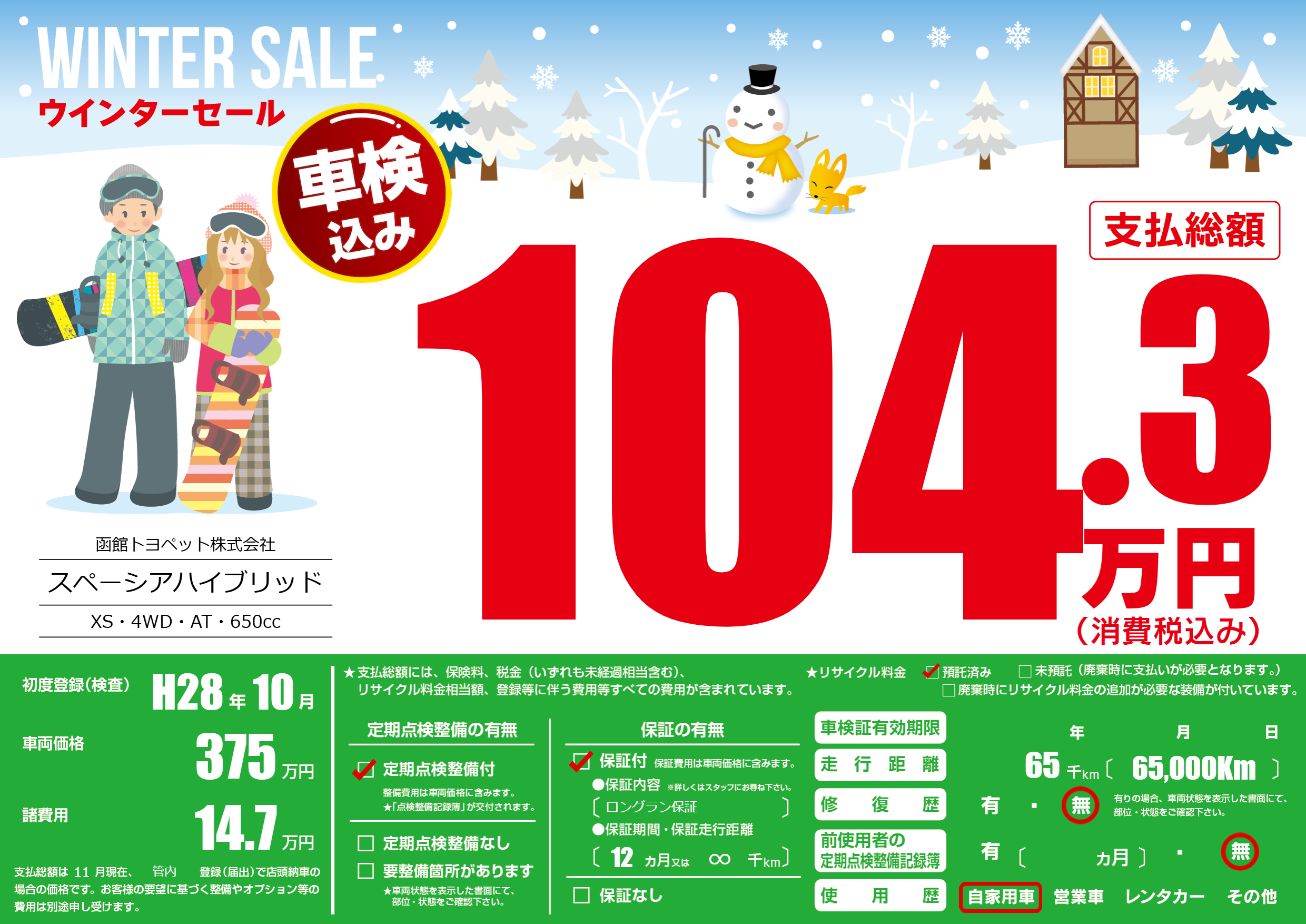 | 走行キロ | 6.5万km | 初年度登録 | H28年10月 |