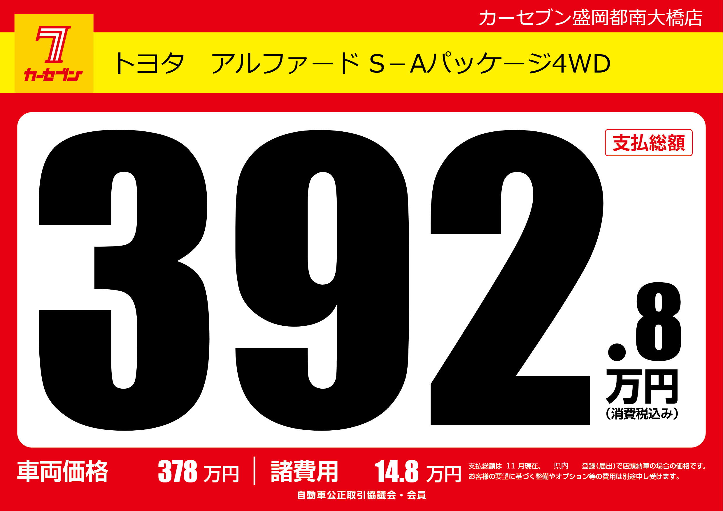 | 車名 | トヨタ アルファード S-Aパッケージ4WD | グレード ミッション 排気量 |