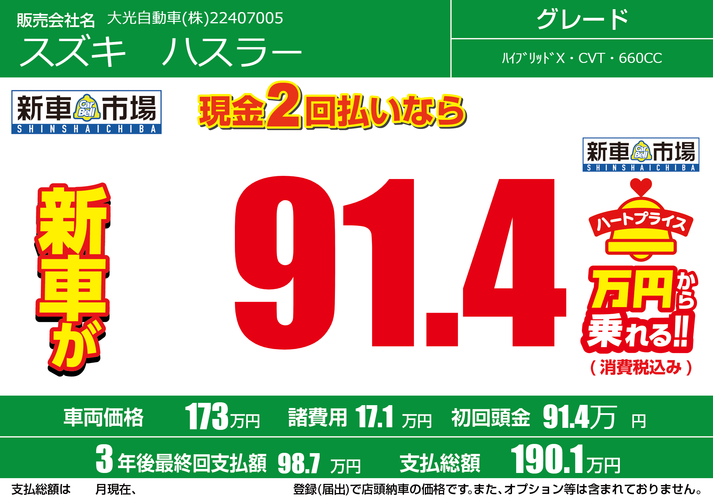 | 車名 | スズキ ハスラー | グレード ミッション 排気量 |