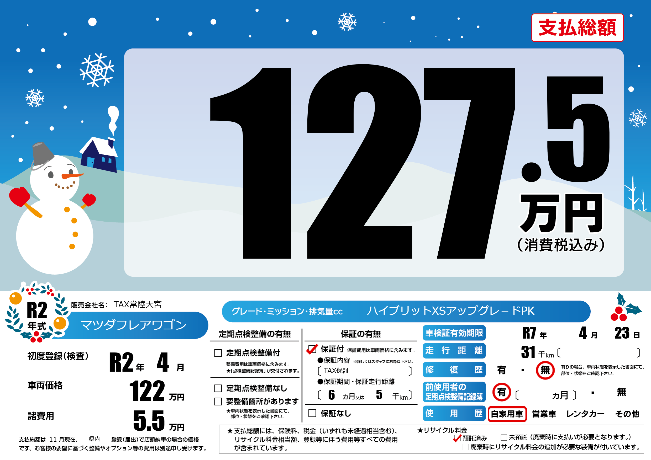 保証付き 保証内容(TAX保証) 6ヶ月または(5)千kmまで |