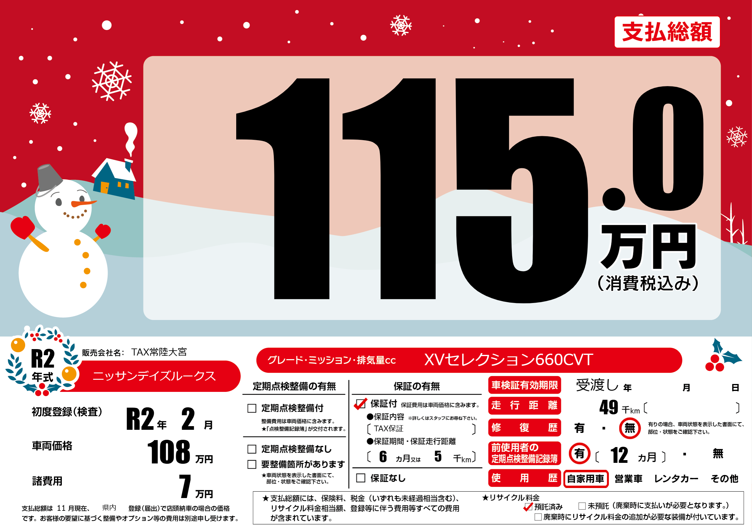 保証付き 保証内容(TAX保証) 6ヶ月または(5)千kmまで |
