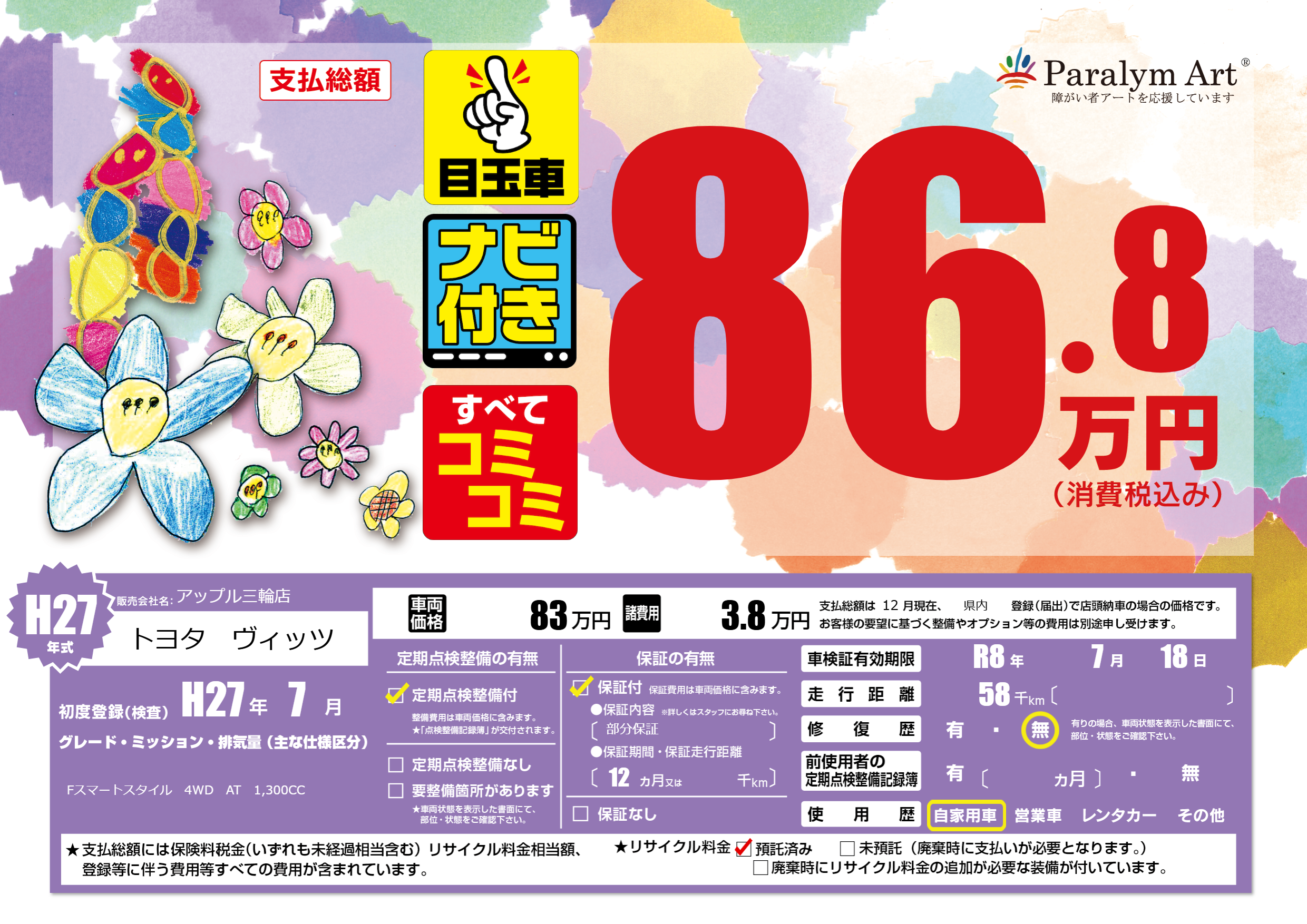 | 車名 | トヨタ ヴィッツ | グレード ミッション 排気量 |