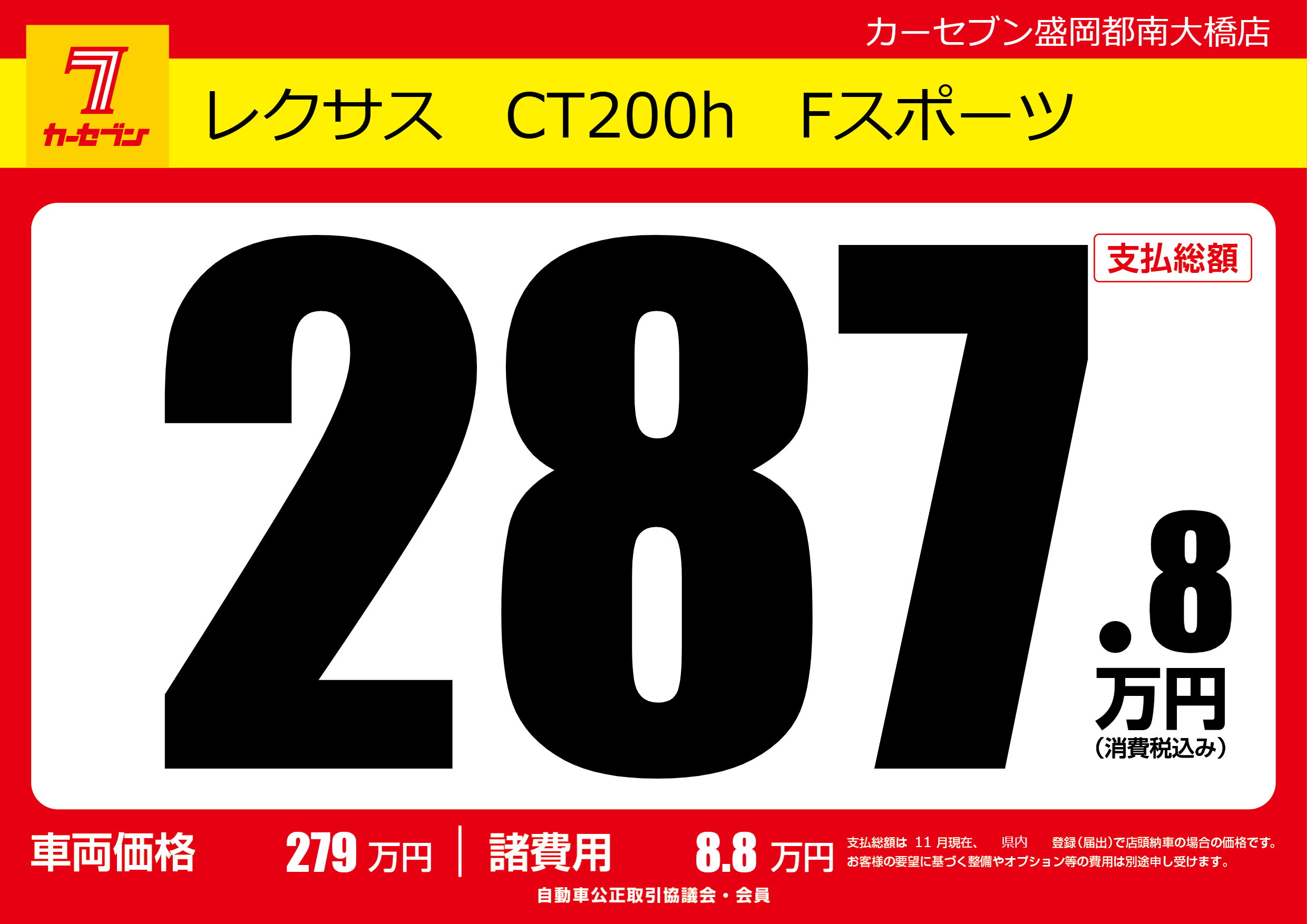| 車名 | レクサス CT200h Fスポーツ | グレード ミッション 排気量 |