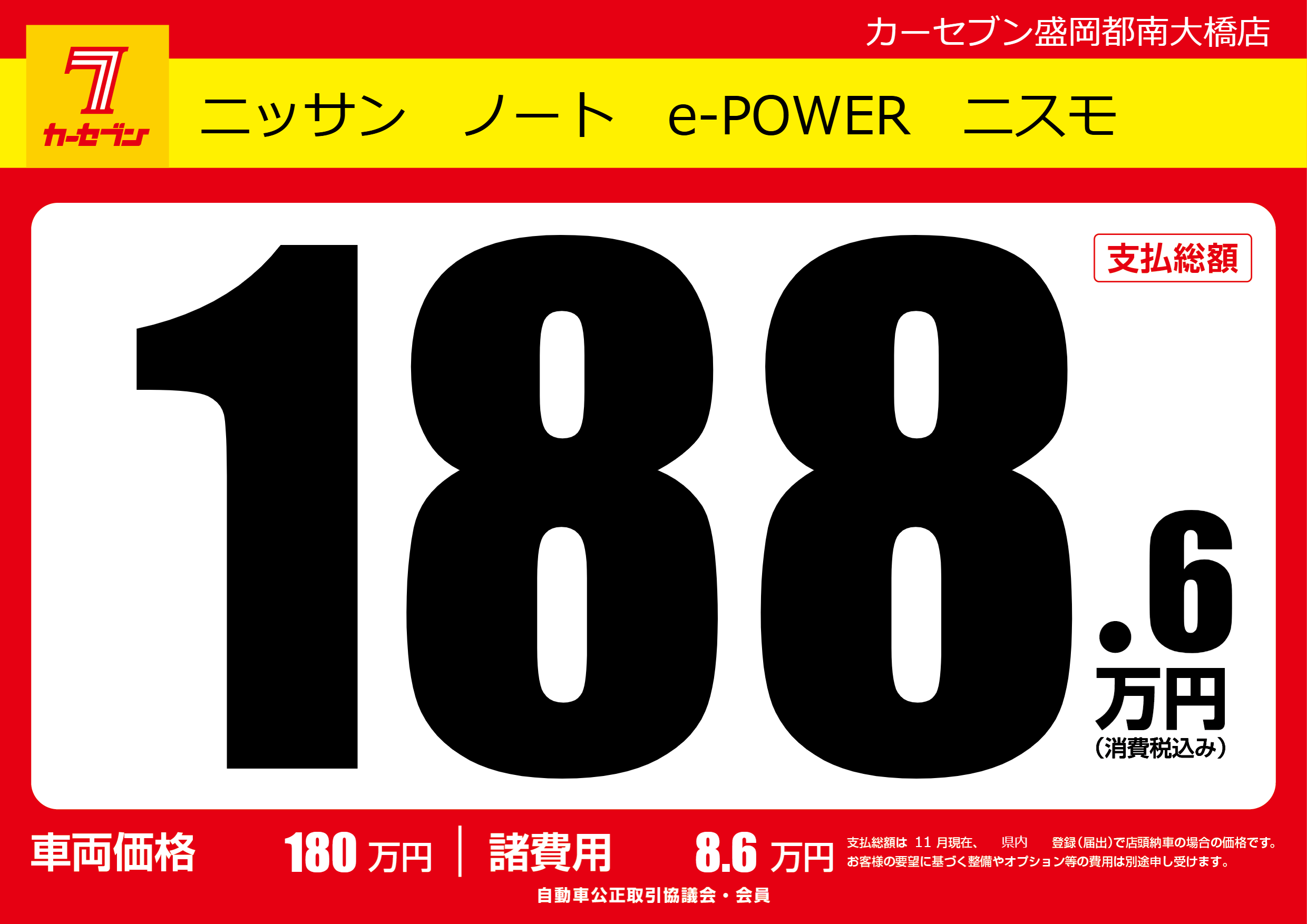 | 車名 | ニッサン ノート e-POWER ニスモ | グレード ミッション 排気量 |